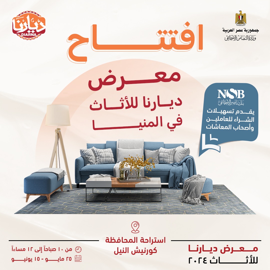 افتتاح معرض ديارنا للأثاث بمحافظة المنيا ويستمر حتى 15 يونيو المقبل