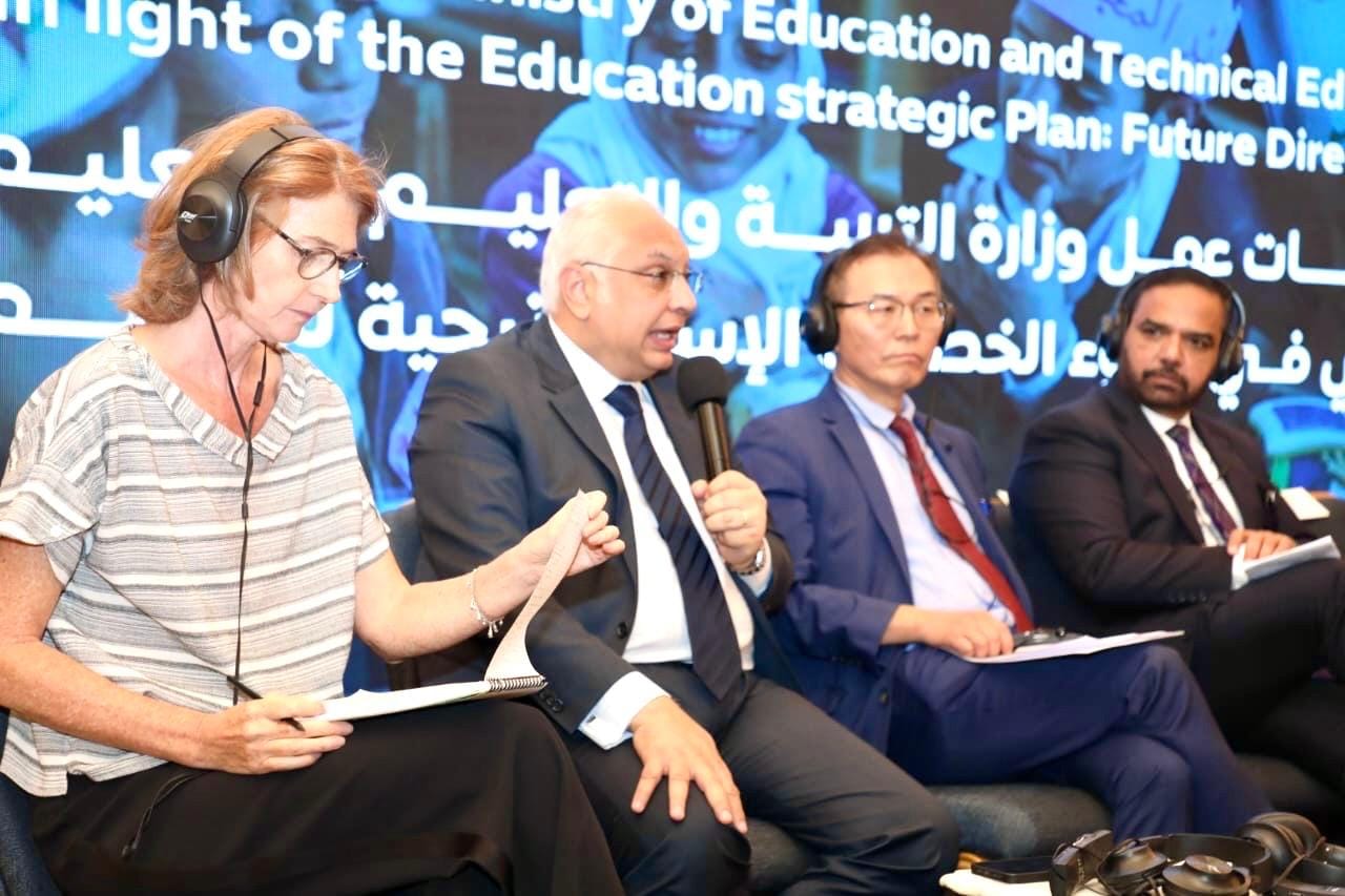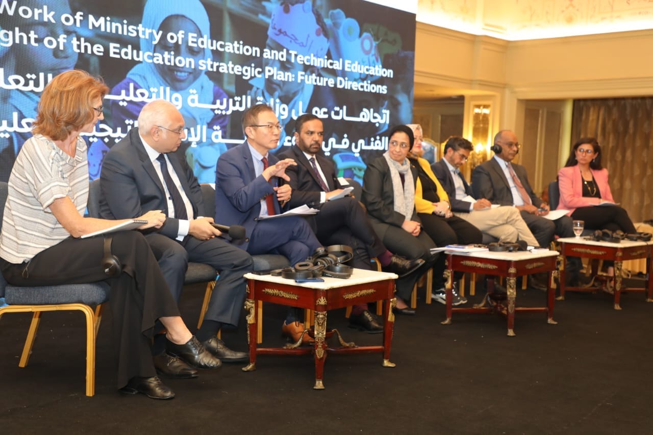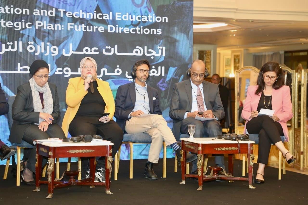 وقامت الدكتورة أميرة كاظم مسؤول أول عمليات قطاع التعليم بالبنك الدولي بإدارة الجلسة، والتى شارك فيها عدد من المتحدثين وهم الدكتور أكرم حسن رئيس الإدارة المركزية لتطوير المناهج والدكتورة هالة عبد السلام رئيس الإدارة المركزية للتعليم العام والدكتور عمر بوصيلة رئيس الإدارة المركزية للتعليم الفني، والدكتور طارق خان كبير متخصصي التعليم بالشراكة العالمية للتعليم، والسيد شيراز شاكيرا رئيس قسم التعليم بمنظمة اليونيسف بمصر، والسيد جوانج تشول وانج رئيس قسم سياسات التعليم بمنظمة اليونسكو باريس، والأستاذة أليس بيرسلين قائد فريق التنمية البشرية والنمو الشامل ببعثة الاتحاد الأوروبي، والأستاذة رضوى عبد الرؤوف رئيس مكون التعليم الفني وسوق العمل، نائب رئيس مشروع التعليم الفني والتحول إلى التعليم الأخضر بالوكالة الألمانية للتعاون الدولي.