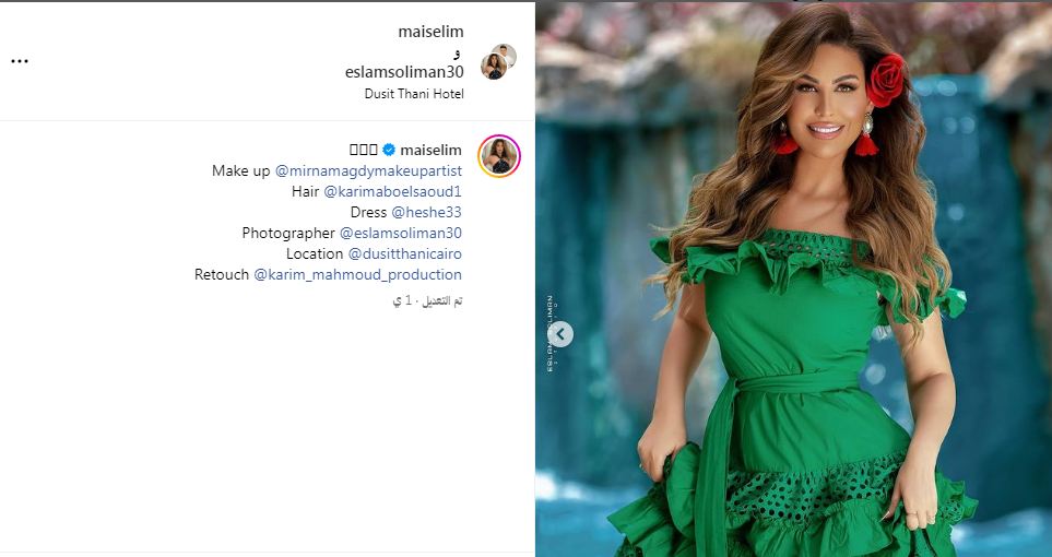 وبدت مي سليم بإطلالة صيفية، مواكبة لأحدث صيحات موضة ربيع وصيف 2024، حيث ارتدت فستان طويل فضفاض، ينتمي لقصة الأوف شولدر، صمم من قماش ناعم باللون الأخضر الزاهي، جعلها تبدو مثل الفراشة في البستان، وتزينت ببعض الإكسسوارات الصيفية الجذابة.