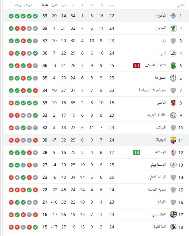 ترتيب الدوري المصري الممتاز
