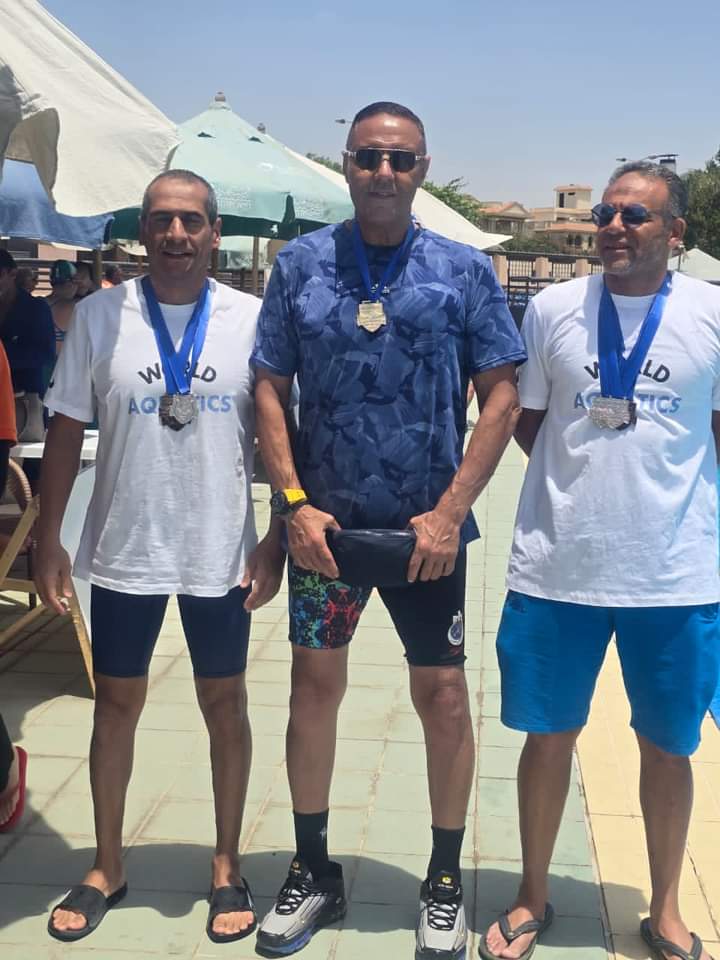 توج السباح احسان جمعة بخمس ميداليات ذهبية لمرحلة 35-39سنة ، كما فاز السباح شريف عادل بخمس ميداليات ذهبية لمرحلة 40 – 44 سنة ، وحصد السباح وليد حسن خمس ميداليات ذهبية لمرحلة 50-54 سنة