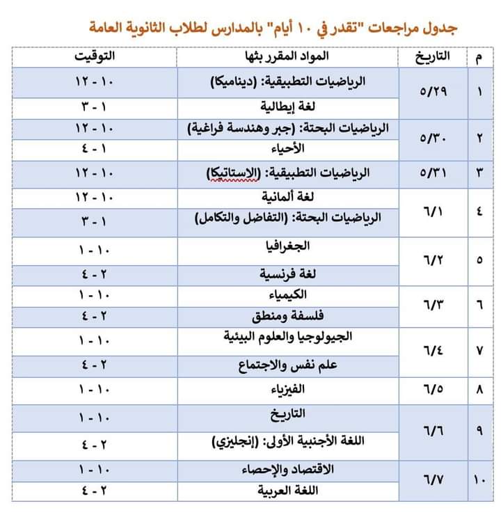 تعليم قنا تعلن مواعيد مبادرة المراجعات لطلاب الثانوية العامة
