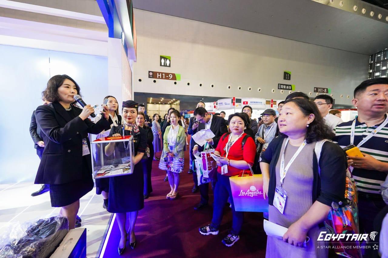 وشهد جناح مصر للطيران إقبالاً كبيراً من زوار المعرض لبحث التعاون المشترك في مجال السفر والسياحة ضمن السوق الصينية المتنامية، كما قامت الشركة بإجراء قرعة علنية لزوار الجناح للفوز بتذكرتي سفر ونماذج طائرات مصر للطيران والعديد من الهدايا التسويقية الأخرى التي جذبت العديد من الزائرين.