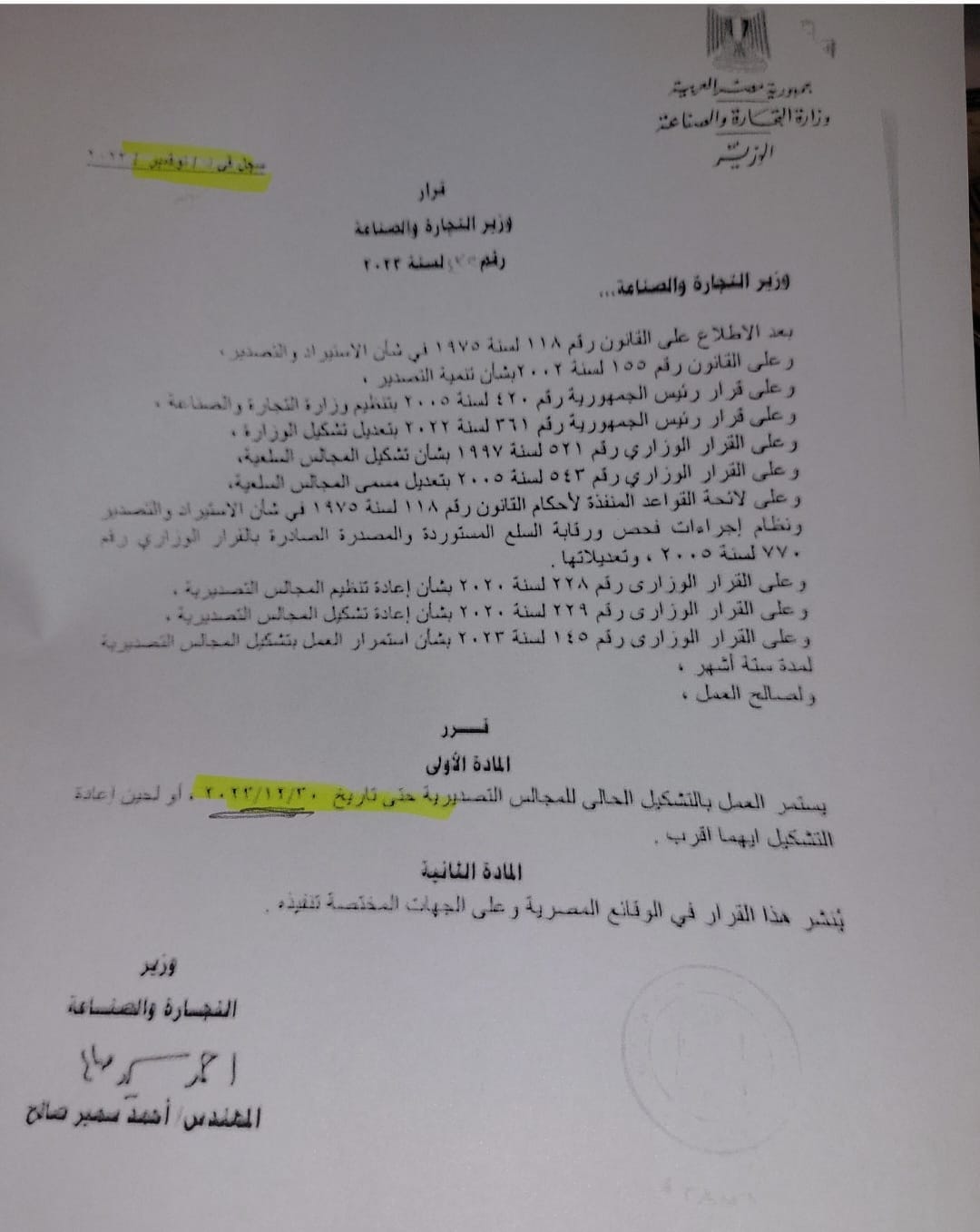 عاد الوزير للمره الثالثه واصدر قرار بتمديد  عمل المجالس  فى الفتره من 30 يناير إلى 30 مارس 2024 ، ليعود للمره  الرابعه وكأن  مصر  تفتقد  للكفاءات القادرة على النهوض  بالتصدير ليقوم   بتمديد  عمل المجالس فى الفترة  من الاول من إبريل وحتى الثلاثون  من مايو  الحالى وهو اليوم  الذى  تنتهى  فيه  فترة  التمديد الرابعه .وبهذا  يكون الوزير  قد قام  بتمديد  عمل المجالس  لمدة  6 أشهر  فى فترة  التمديد  الأولى، ثم 55 يوما فى فترة  التمديد  الثانية ،ثم  شهرين  فى الفترة  الثالثه ،ثم  شهرين  آخرين  فى فترة   التمديد  الرابعه .