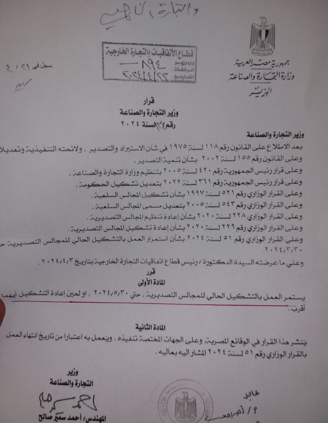 اليوم.. انتهاء عمل المجالس التصديرية بعد تمديد فترتها 4 مرات