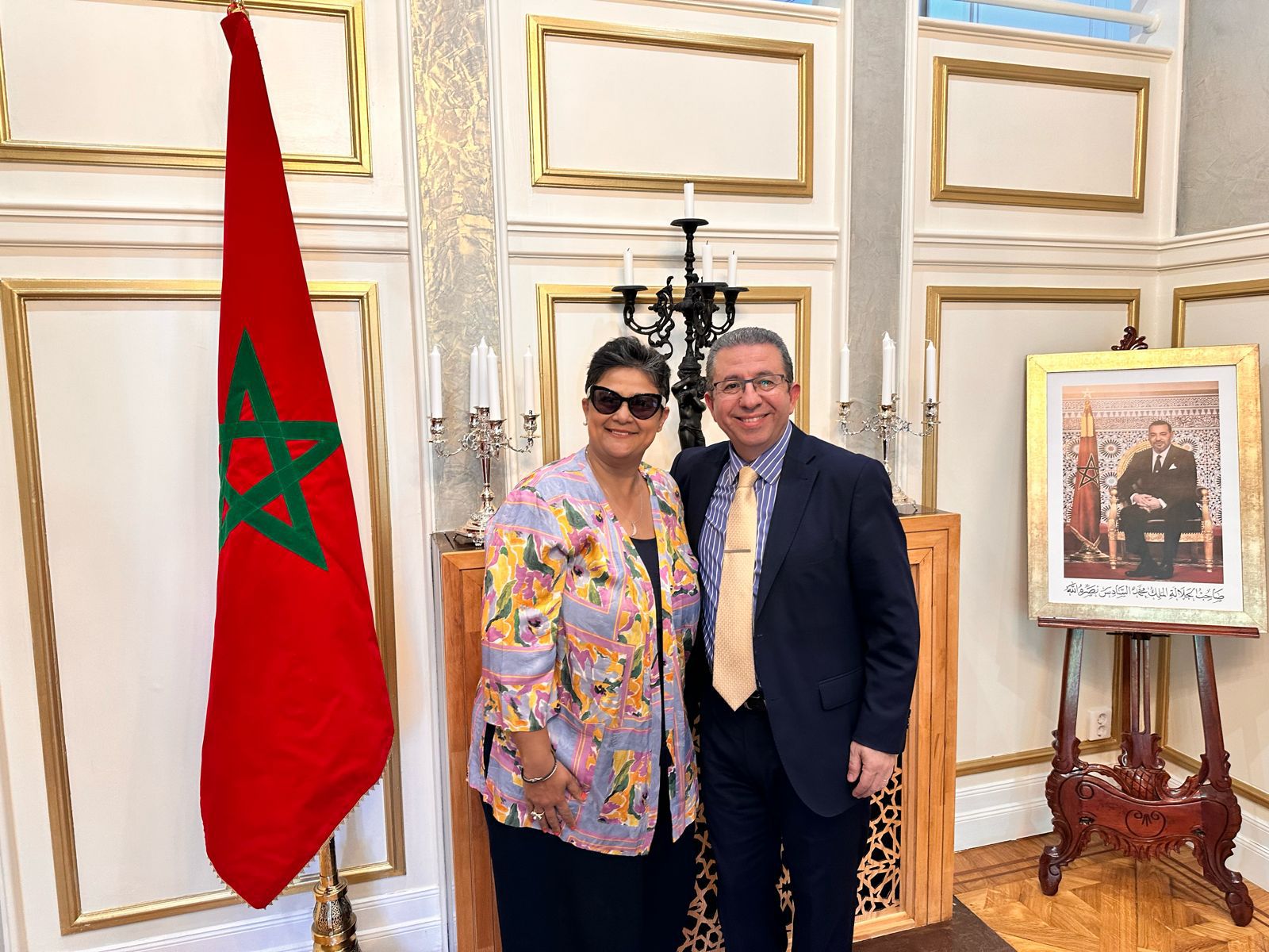 التقت السفيرة  الدكتورة نميرة نجم مدير المرصد الأفريقي للهجرة و خبير القانون الدولي  ومحام فلسطين مع السفير كريم مدرك سفير المغرب في السويد في دار سكن السفير المغربي في استوكهولم ، تناول  اللقاء أخر التطورات في ملف الحرب في غزة و مستجدات الموقف القانوني الفلسطيني والدعاوي القضائية المثارة امام محكمة العدل الدولية و المحكمة الجنائية الدولية.