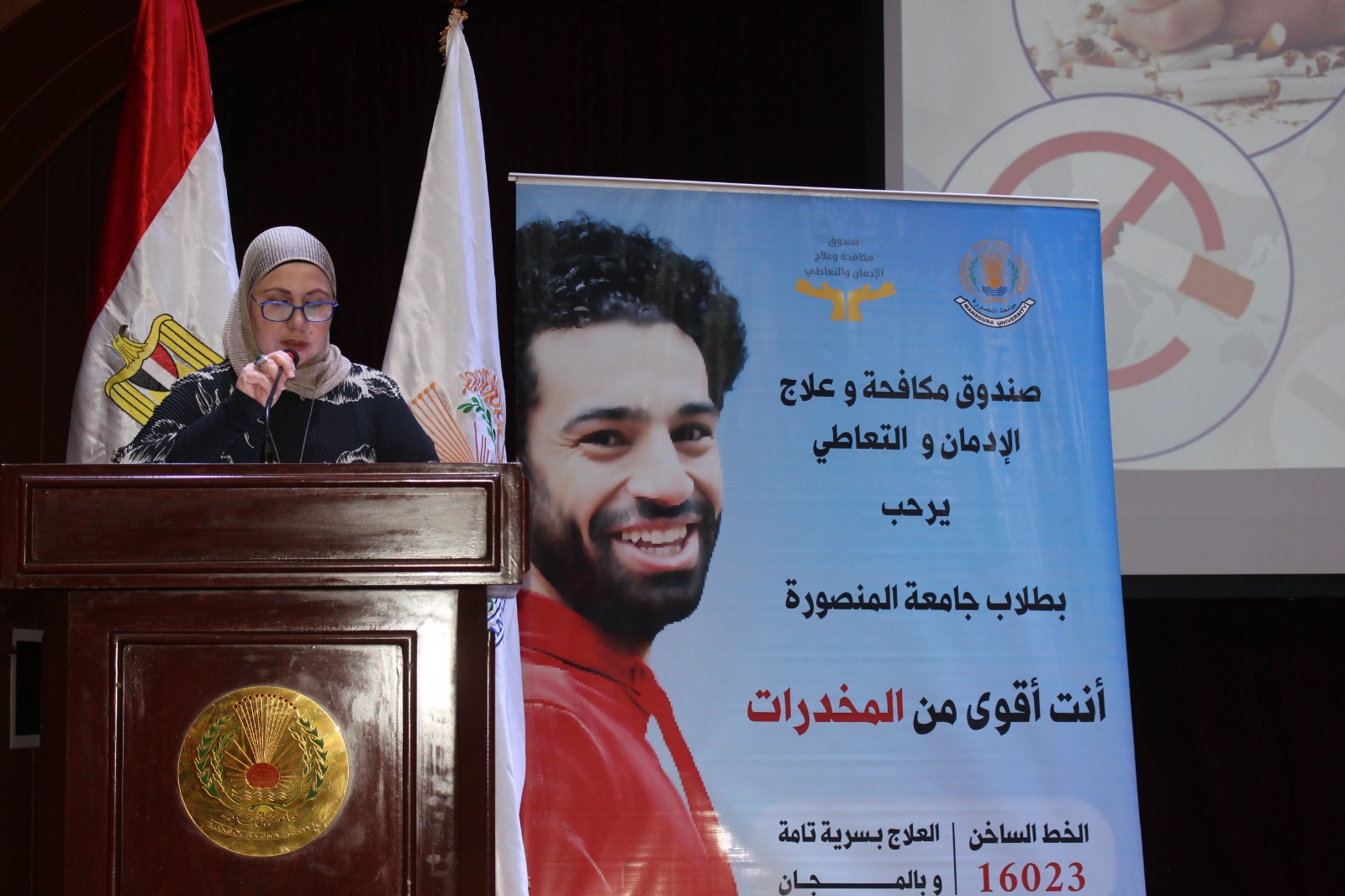 نظمت جامعة المنصورة، اليوم الخميس، الندوة التوعوية (صحتك أمانة – لا للتدخين) تزامنًا مع الاحتفال باليوم العالمي للامتناع عن التدخين التي نظمتها لجنة التوعية المجتمعية بالجامعة بالتعاون مع إدارة المشروعات البيئية، بحضور الدكتور محمد عبد العظيم، نائب رئيس الجامعة لشئون خدمة المجتمع وتنمية البيئة، والدكتور إبراهيم عسكر مدير البرامج الوقائية بصندوق مكافحة وعلاج الإدمان والتعاطي، والشيخ صفوت نظير وكيل وزارة الاوقاف بالدقهلية، والقس تادروس أنور كاهن كنيسة ماري مرقص بطلخا.