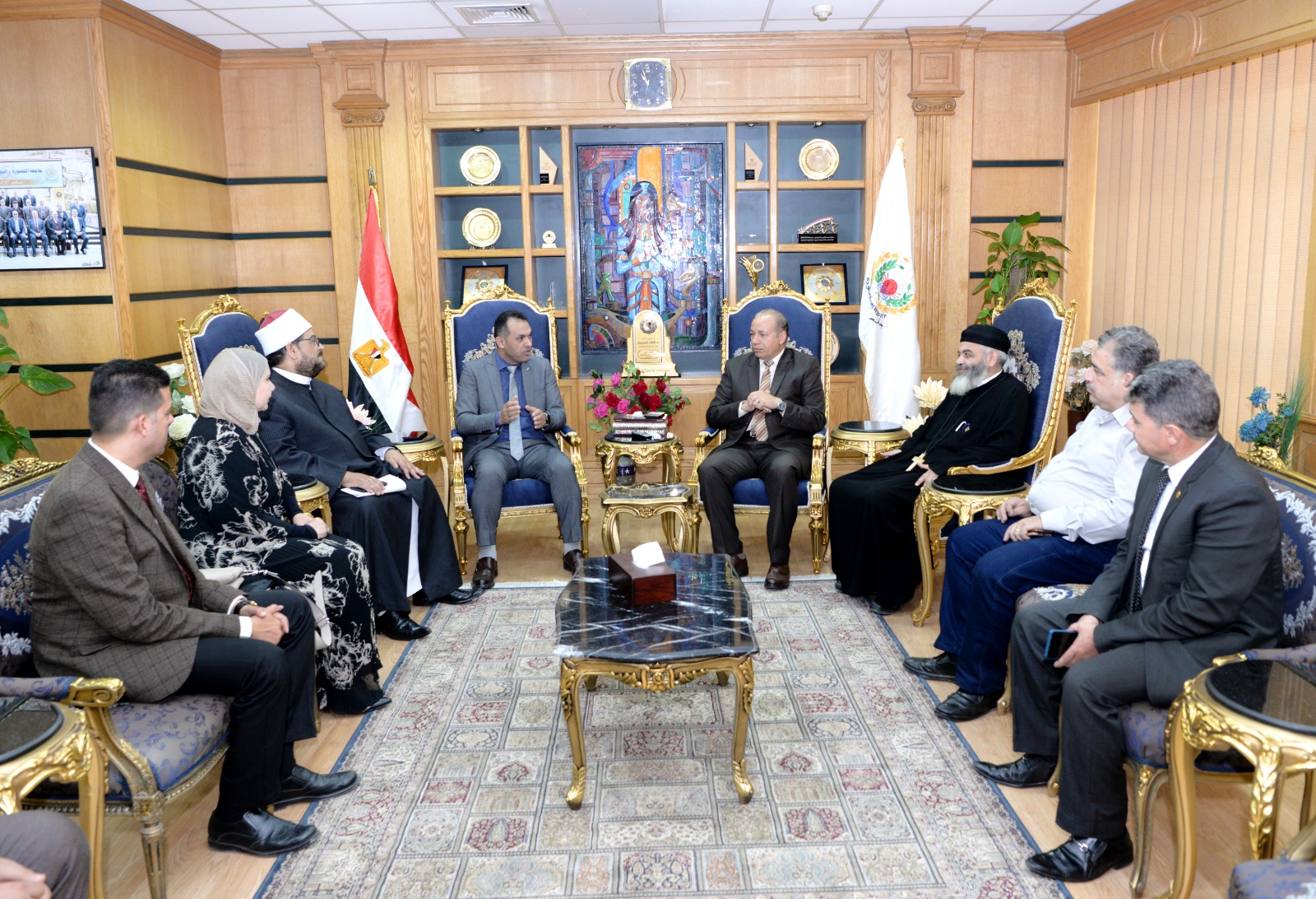 وعرض الدكتور إبراهيم عسكر دور صندوق مكافحة وعلاج الإدمان والتعاطي في تنفيذ البرامج الوقائية المختلفة بمشاركة الجامعة لحماية الشباب من أخطار التدخين والإدمان والحملات الميدانية في الجامعة والقوافل المختلفة خارجها.