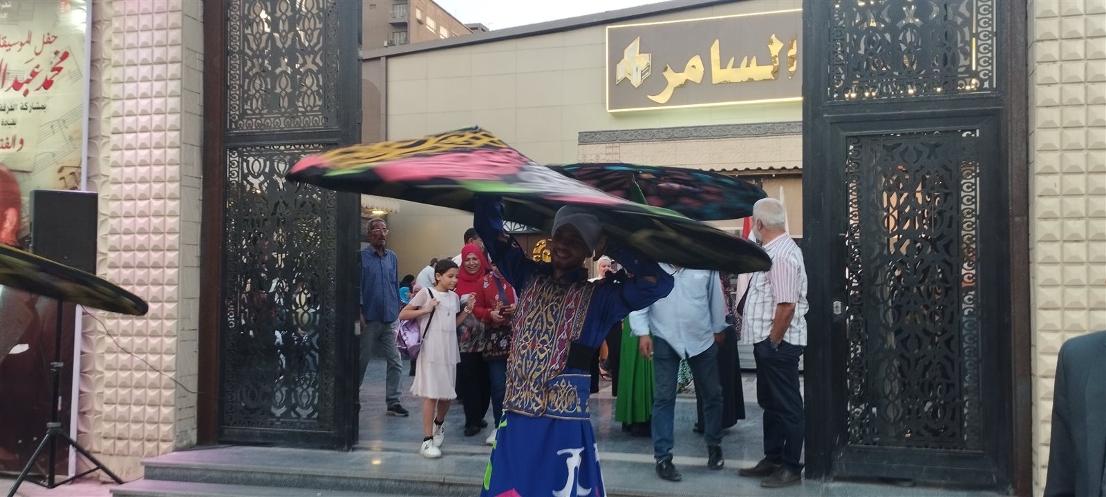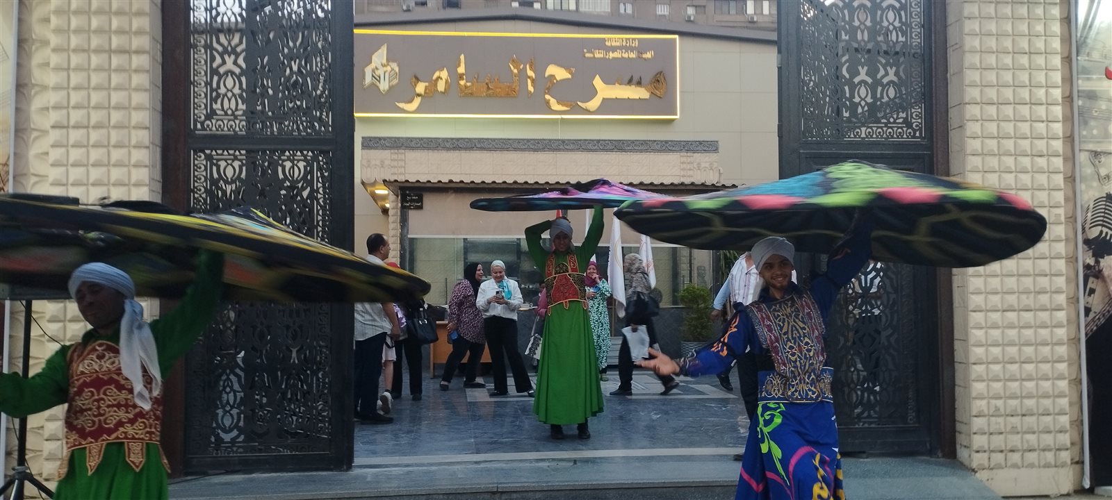 واستقبلت فرقة التنورة التراثية التابعة لقصور الثقافة الحاضرين على انغام الدى جى للاغانى الوطنية.