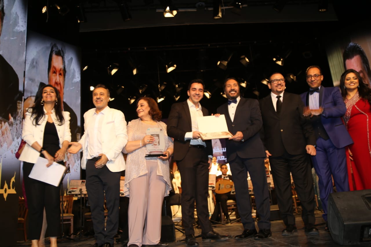 واختتم الحفل بإهداء الفنان إيهاب فهمي؛ لأسرة الموسيقار الكبير الراحل عمار الشريعي (الإعلامية الكبيرة ميرفت القفاص- أرملة الراحل عمار الشريعي، ونجله مراد الشريعي) درع تذكاري وشهادة تقدير لرحلة العطاء الفنية للراحل عمار الشريعي.