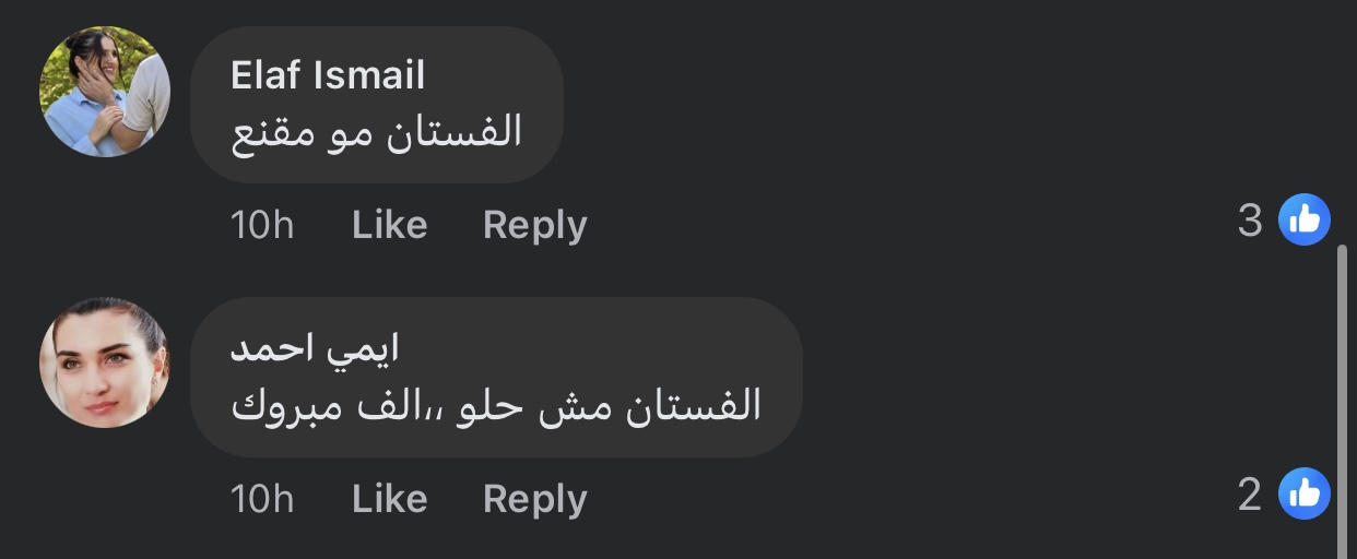 أما عن التعليقات التي انتقدت إطلالتها، فعلق المتابعون:" هي أحلى من كده بكتير، المكياج والشعر مش لايقين عليها، لا فستان ولا ميكب ولا شعر، فستان ياسمين رئيس وحش أوي".