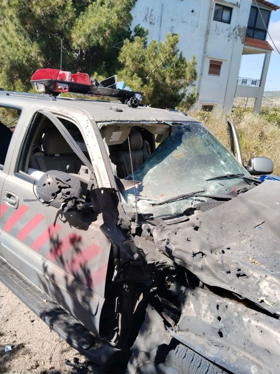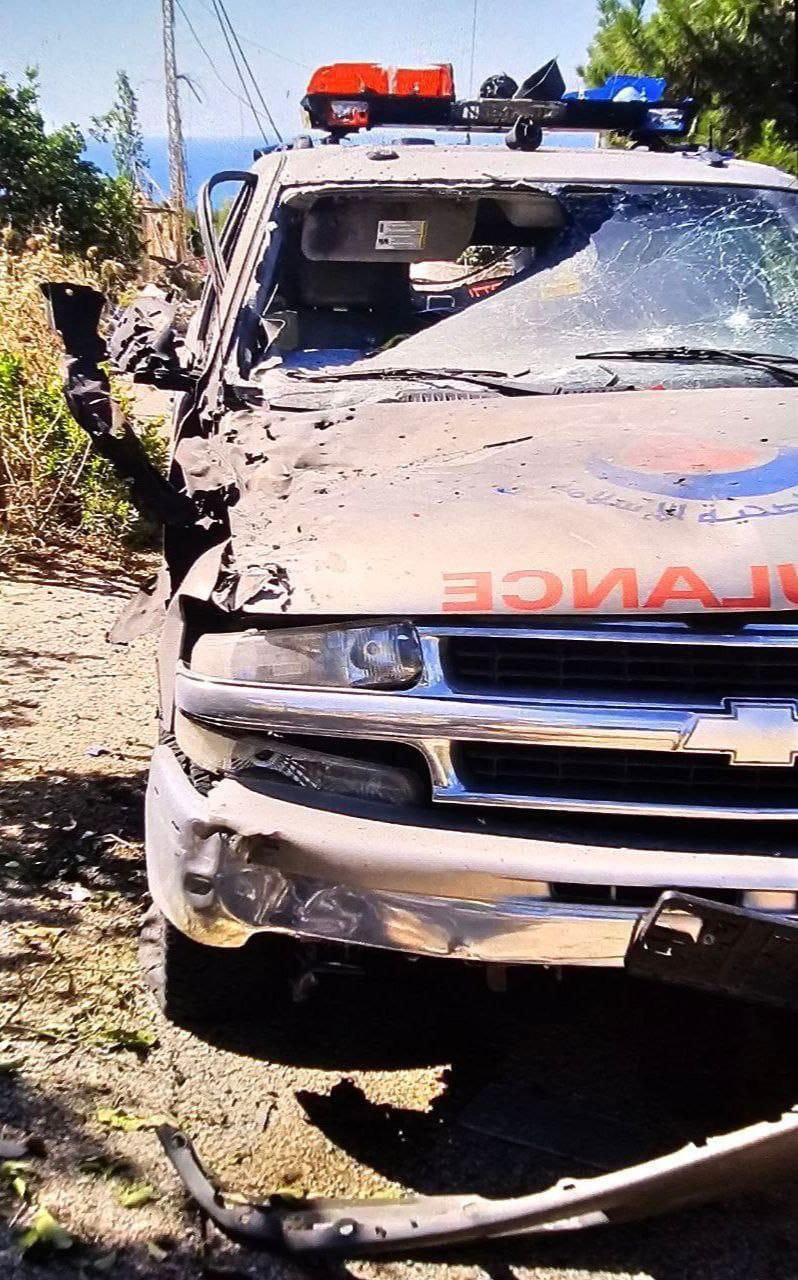 ظهرت سيارة الإسعاف التي استهدفتها مسيرة إسرائيلية في بلدة الناقورة جنوب لبنان، محطمة تماما من الجهة الأمامية للسيارة، وكانت ذاهبة لانقاذ جرحى ومصابين في غارة في منطقة أخرى.