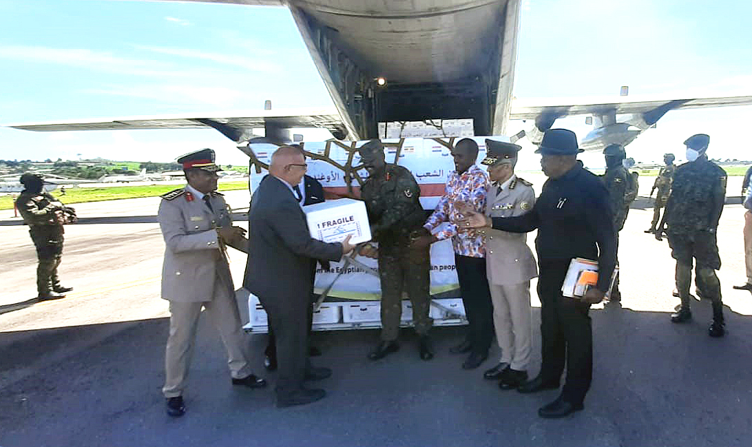 جاء ذلك تنفيذاً لتوجيهات السيد الرئيس عبد الفتاح السيسى رئيس الجمهورية القائد الأعلى للقوات المسلحة بتقديم كافة سبل الدعم والمعاونة للأشقاء فى جمهورية أوغندا لمواجهة الآثار الناجمة عن تفشى مرض الحمى القلاعية ومساعدتهم فى السيطرة على المرض.