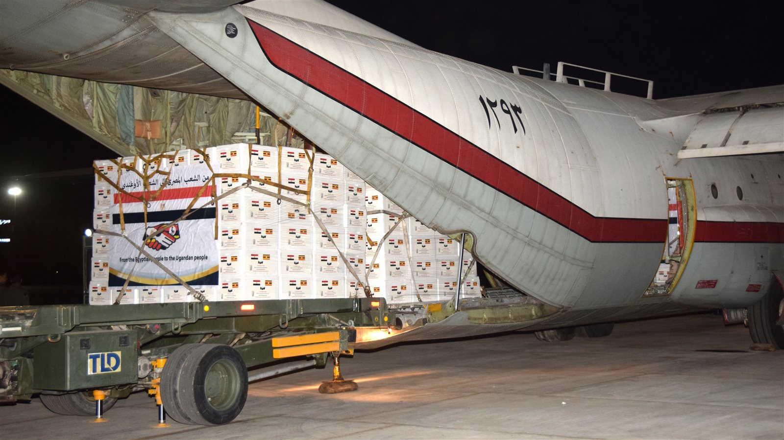 أقلعت طائرة نقل عسكرية من طراز ( C 130) من قاعدة شرق القاهرة الجوية إلى دولة أوغندا محملة بعدد (3) مليون جرعة من اللقاح الثلاثى للحمى القلاعية من إنتاج معهد بحوث الأمصال واللقاحات البيطرية بالتعاون مع الهيئة العامة للخدمات البيطرية بوزارة الزراعة وإستصلاح الأراضى وإدارة الخدمات البيطرية للقوات المسلحة.