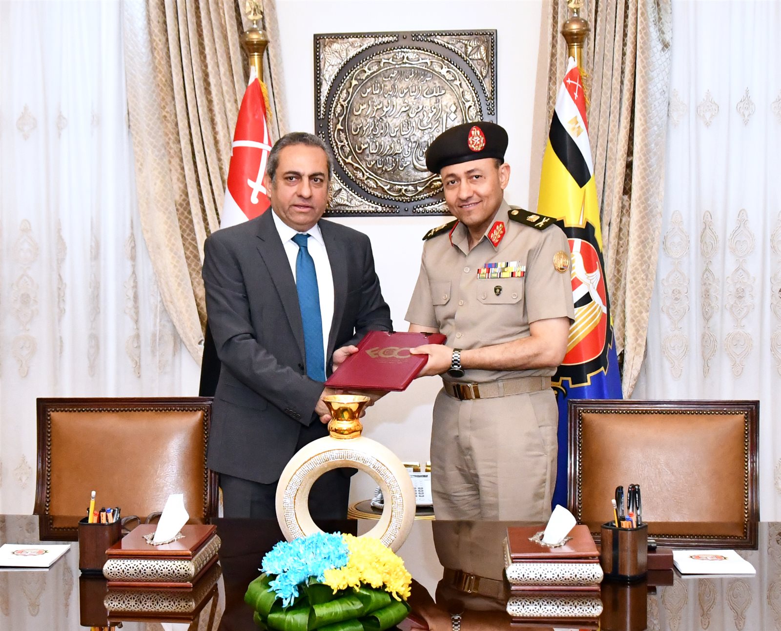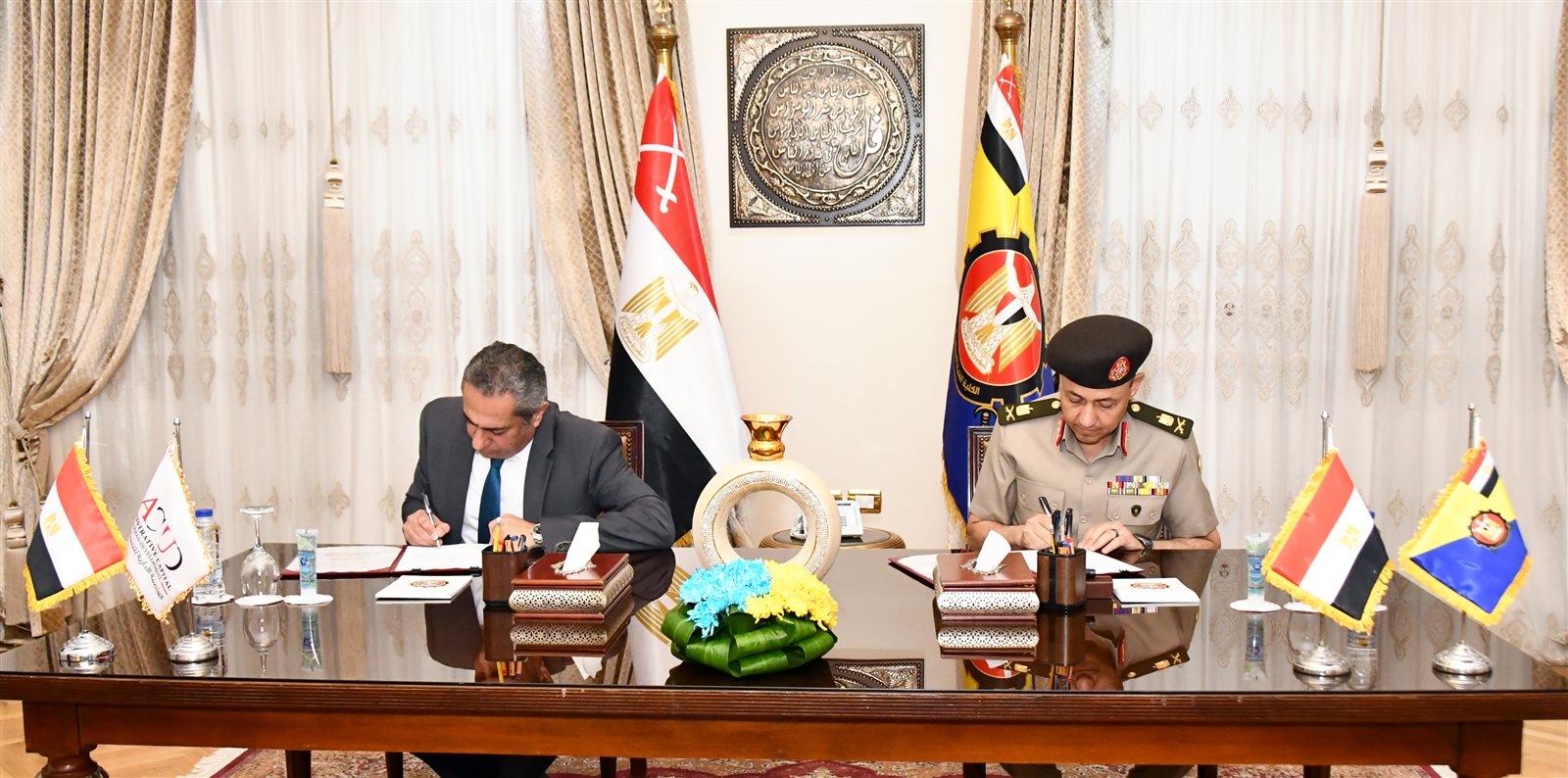 وقع اللواء أستاذ دكتور معتز إبراهيم أبو النور مدير الكلية الفنية العسكرية بروتوكول تعاون مع المهندس خالد عباس رئيس مجلس الإدارة والعضو المنتدب لشركة العاصمة الإدارية للتنمية العمرانية .