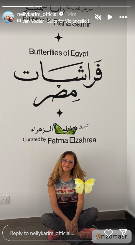 في الوقت نفسه، نشرت نيللي كريم صورة جديدة من أحدث ظهور لها بعد مرور ساعات قليلة على إعلان طلاقها من هشام عاشور، وذلك أثناء حضورها معرض الفنانة رانا سمير، تحت عنوان "فراشات مصر"، وذلك عبر ستوري حسابها على إنستجرام أيضًا.