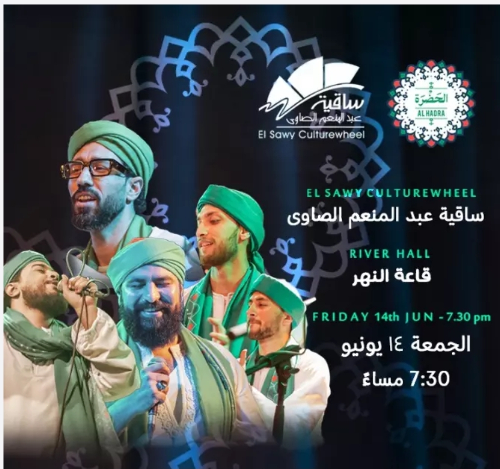تستقبل ساقية عبد المنعم الصاوي، حفل إنشاد ديني لفرقة الحضرة، مساء يوم الجمعة المقبل الموافق ١٤ يونيو في تمام الساعة السابعة ونصف مساء بقاعة النهر.