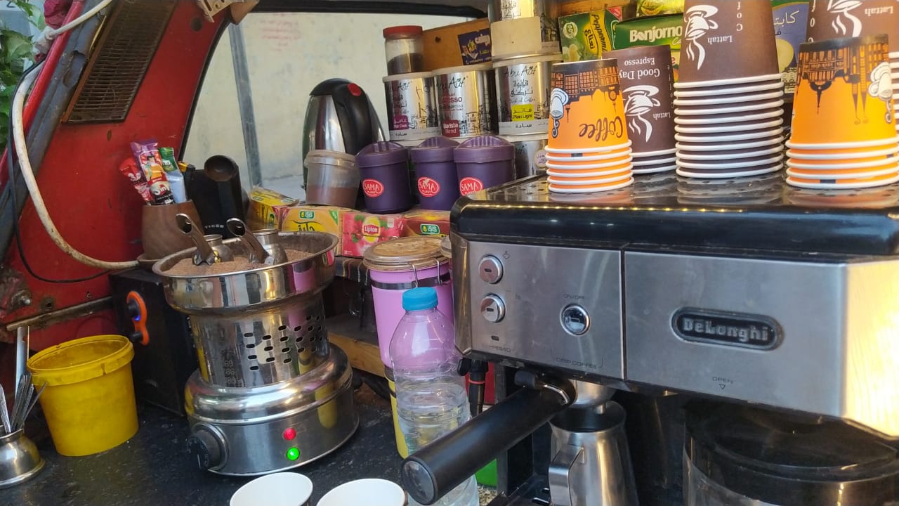 بدأ رمضان مشروعه منذ خمسة أشهر، يقول:"اقترحت على صاحب السيارة بدلًا من عدم الاستفادة بها، استغلالها في مشروع كافيه متنقل، وأحضرت الماكينات اللازمة لعمل مشروبات مختلف أنواع القهوة، والمشروبات الساخنة".