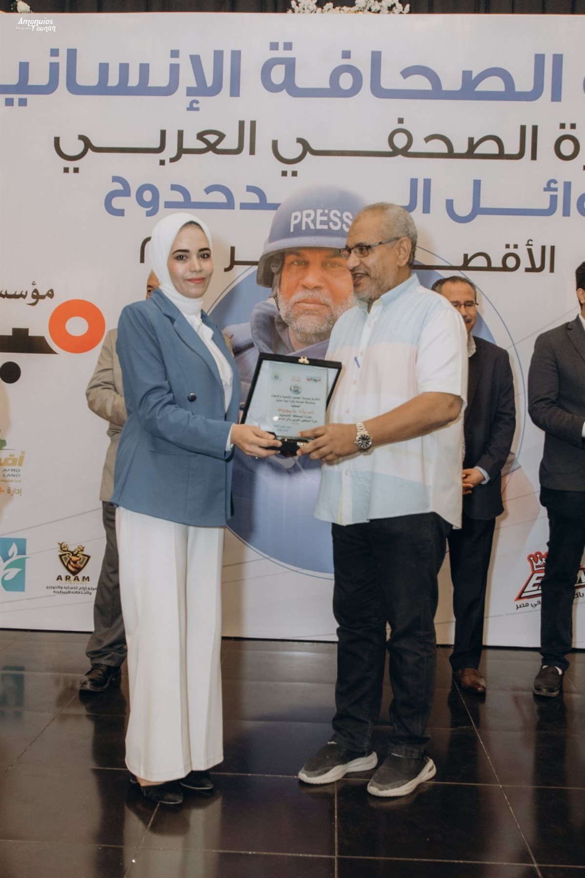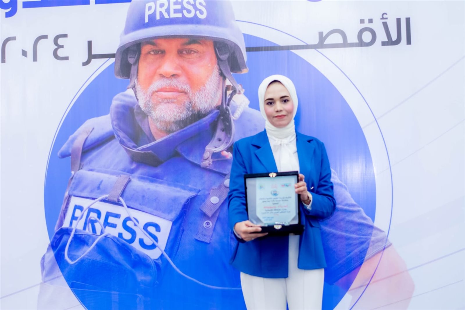 درع “الصحافة الإنسانية” للزميلة أسماء حموده في دورة الصحفي الفلسطيني وائل الدحدوح
