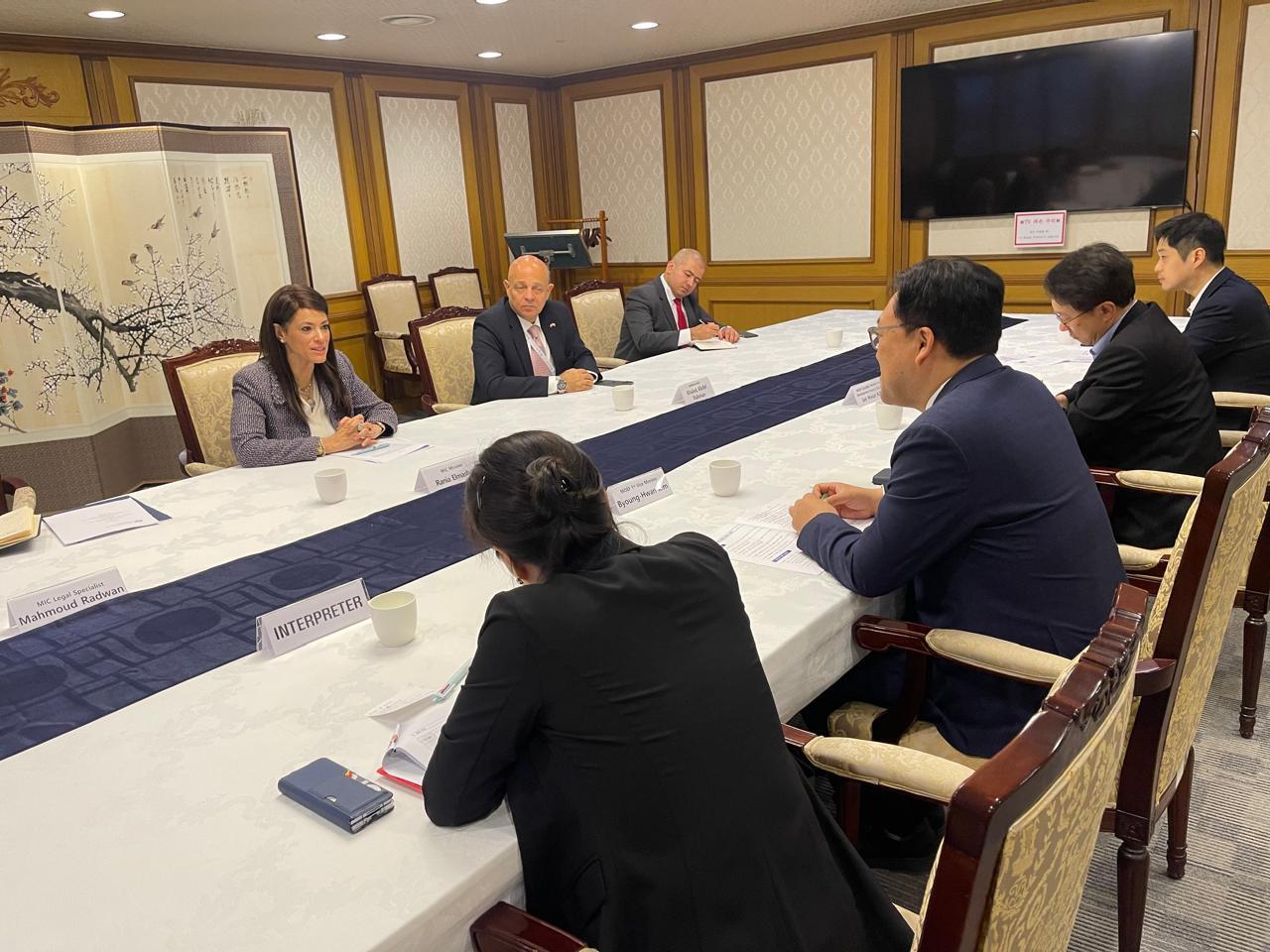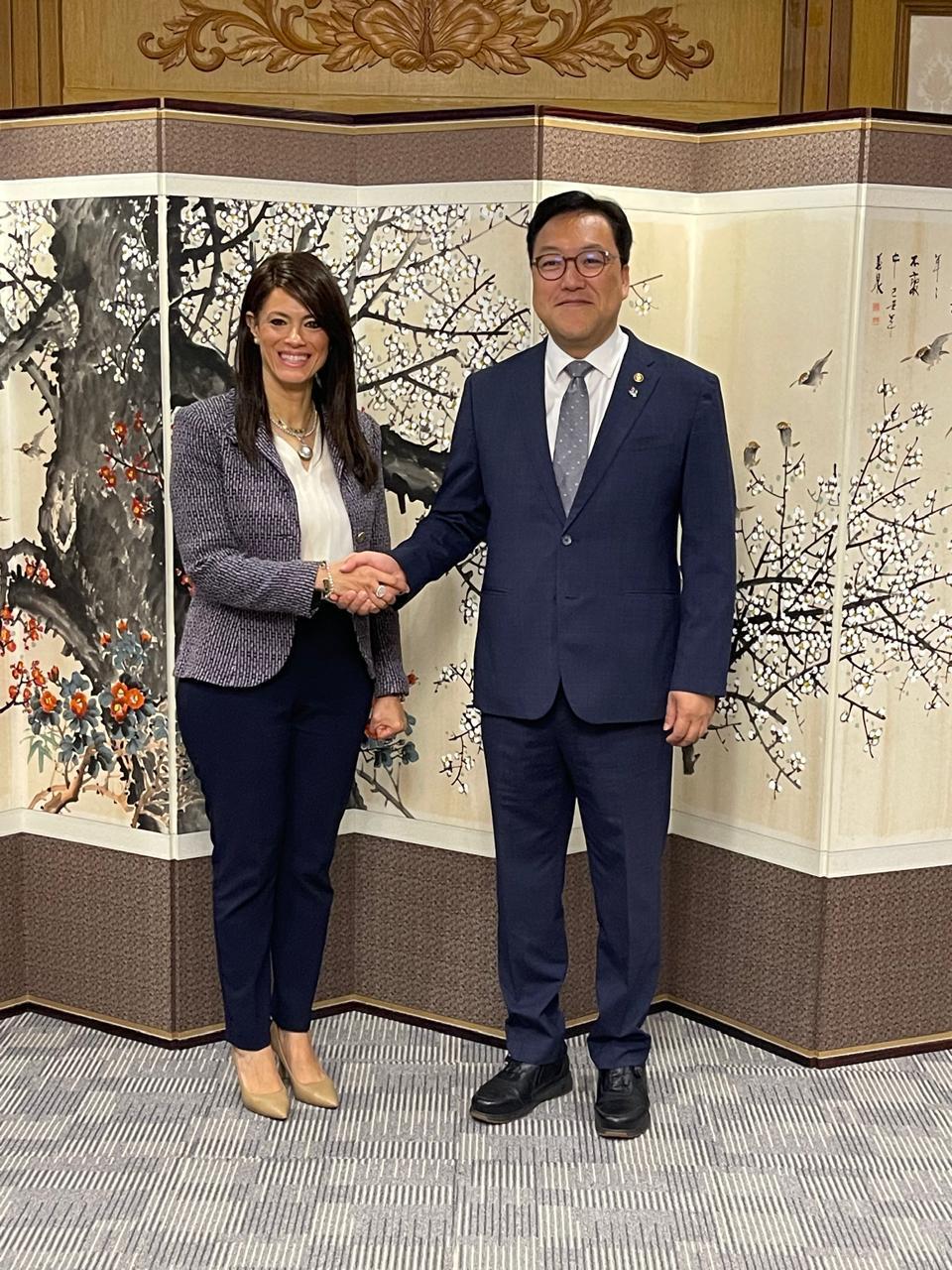 بينما رحب نائب وزير الاقتصاد والمالية الكوري، بوزيرة التعاون الدولي، مؤكدًا اعتزاز كوريا الجنوبية بالشراكة مع مصر باعتبارها من الدور المحورية في قارة أفريقيا والمنطقة وأكثر الدول تعاونًا مع كوريا الجنوبية في القارة، في مختلف المجالات وأهمية التعاون الإنمائي في دعم أهداف التنمية المستدامة، لافتًا إلى مذكرة التفاهم الموقعة في عام 2022 بين الدولتين بقيمة مليار دولار والتي أتاحت تنفيذ مشروعات تلبي متطلبات التنمية وتحقق المصالح المشتركة على رأسها المشروع المشترك لتصنيع وصيانة 320 قطارًا بالشراكة بين القطاعين الحكومي والخاص، ممثلًا في الشركة الوطنية لتصنيع السكك الحديدية "نيرك"، وتحالف شركة هيونداي الكورية، في منطقة شرق بورسعيد، فضلًا عن مشروع التحول الأخضر في قناة السويس. كما أكد الحرص على دعم مشروعات المناخ والتحول الأخضر في مصر.