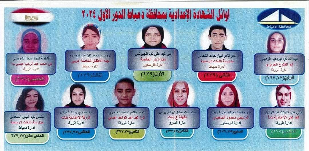محافظ دمياط تهنئ أوائل الشهادة الإعدادية