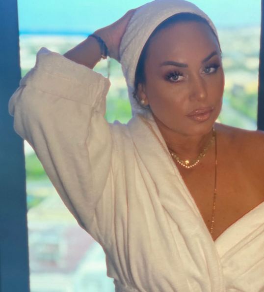 وبدت إنجي علي بإطلالة منزلية خاصة، حيث ارتدت برُنس أبيض لا يحمل أى نقوش وتزينت ببعض الإكسسوارات الشابية باللون الذهبي.