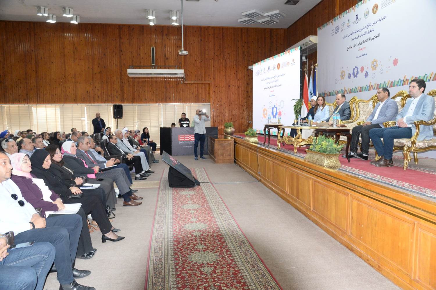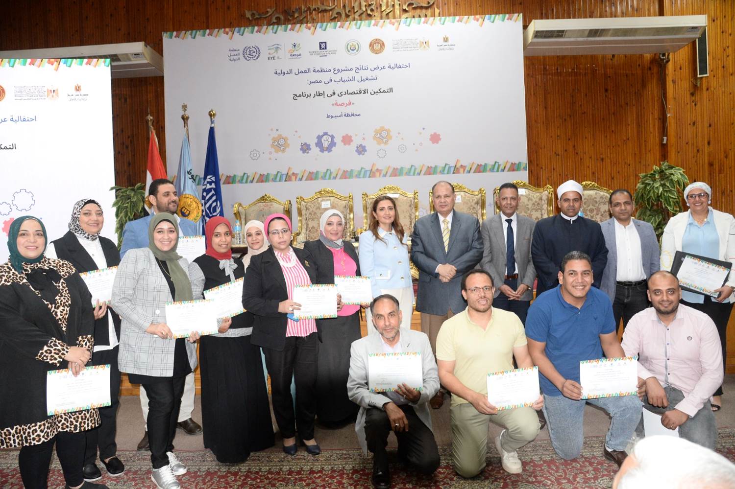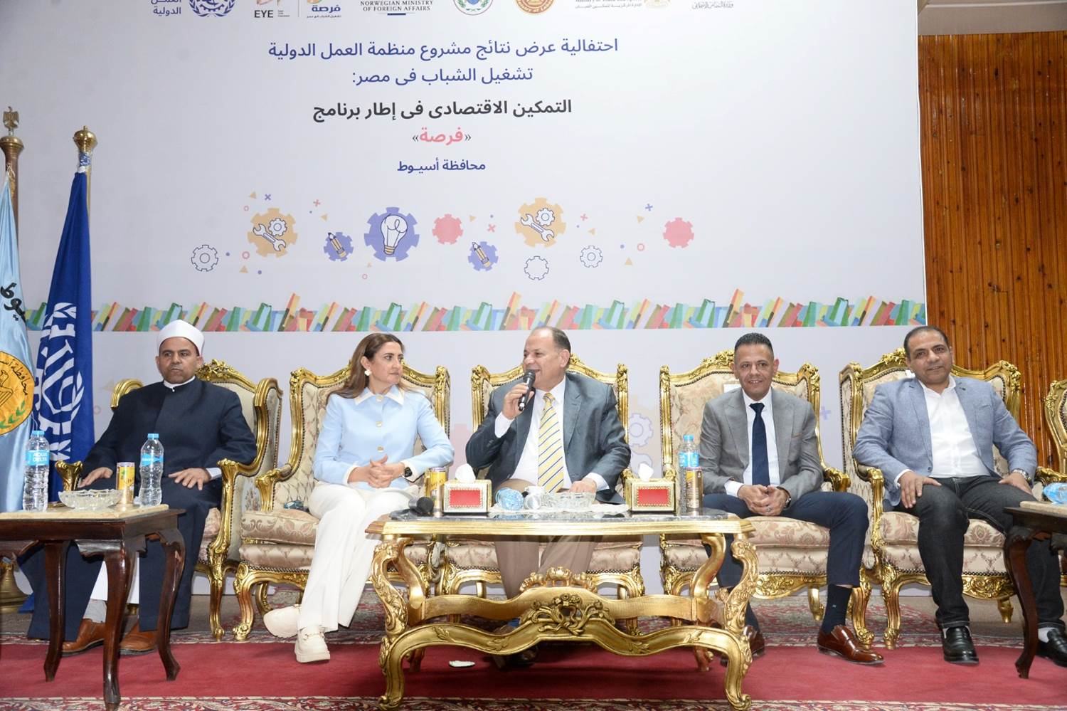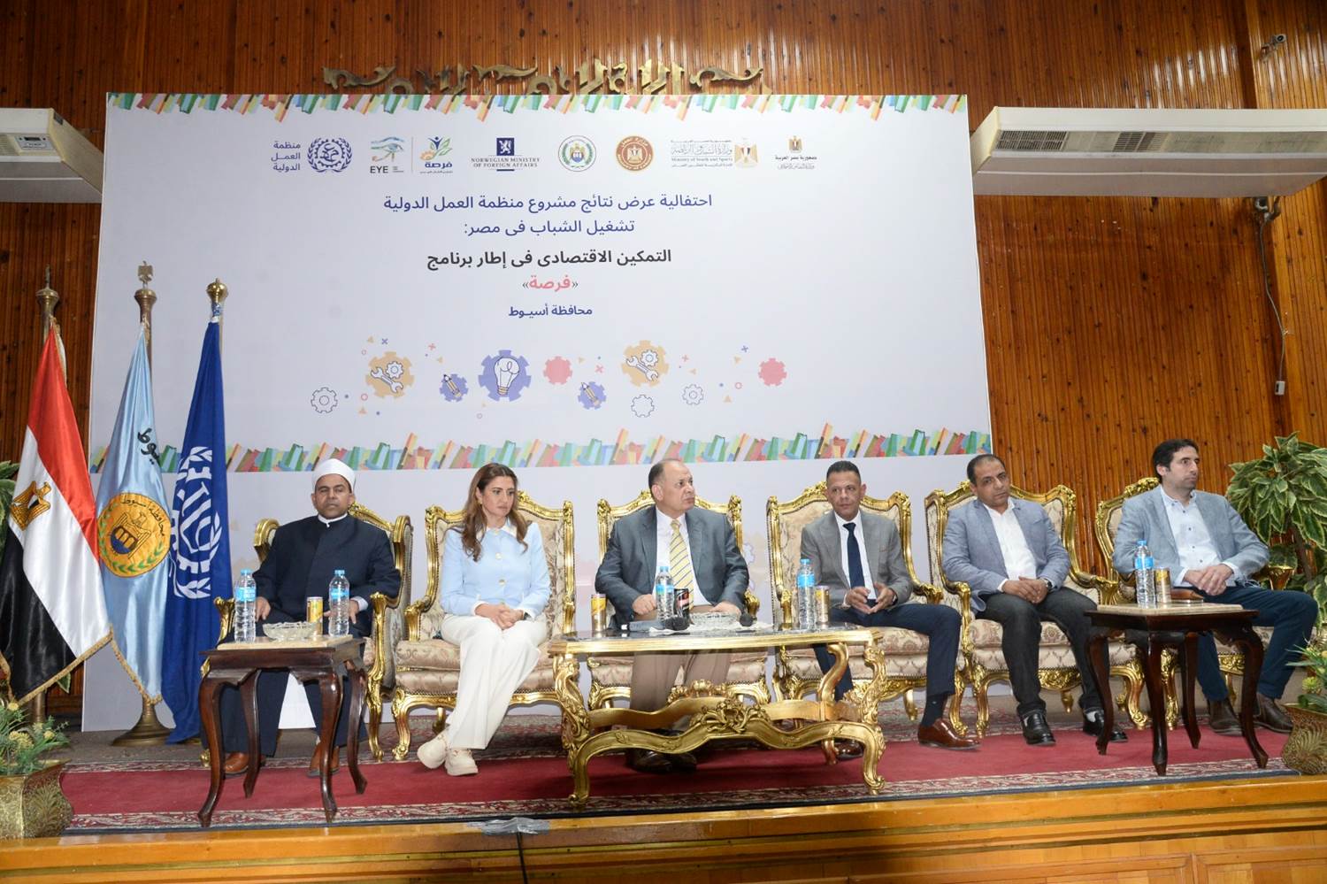 شهد اللواء عصام سعد محافظ أسيوط، احتفالية عرض نتائج مشروع منظمة العمل الدولية، تشغيل الشباب في مصر ـ التمكين الاقتصادي في إطار برنامج "فرصة" الوطني EYE FORSA، والممول من الحكومة النرويجية بالتعاون مع وزارة التضامن الاجتماعي بقيادة الدكتورة نيفين القباج وزيرة التضامن الاجتماعي الذي يساهم في تقديم الدعم والتمكين الاقتصادي للمستفيدين من برنامج "تكافل وكرامة" عن طريق تيسير تقديم أنشطة بناء القدرات على مهارات العمل وريادة الأعمال، وذلك بقاعة المؤتمرات الكبرى بديوان عام المحافظة.