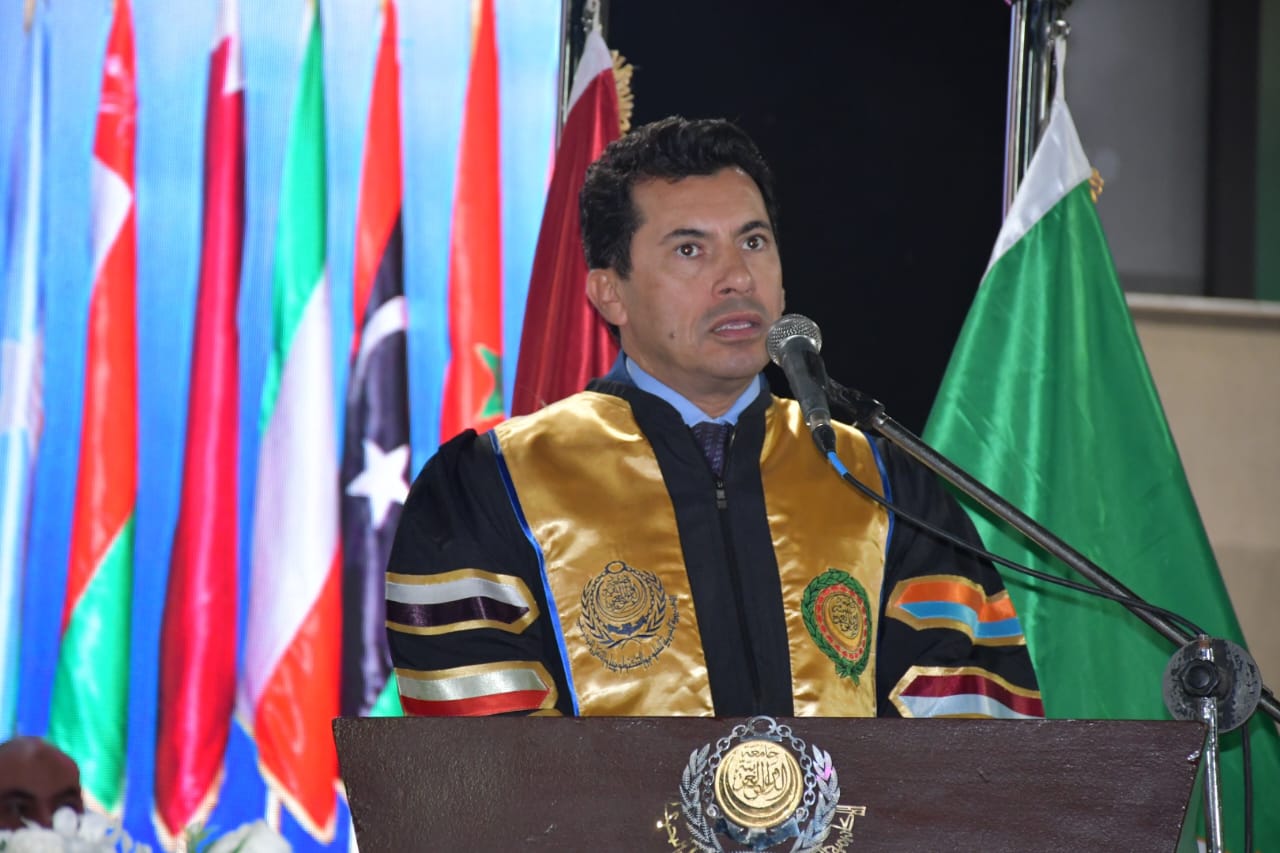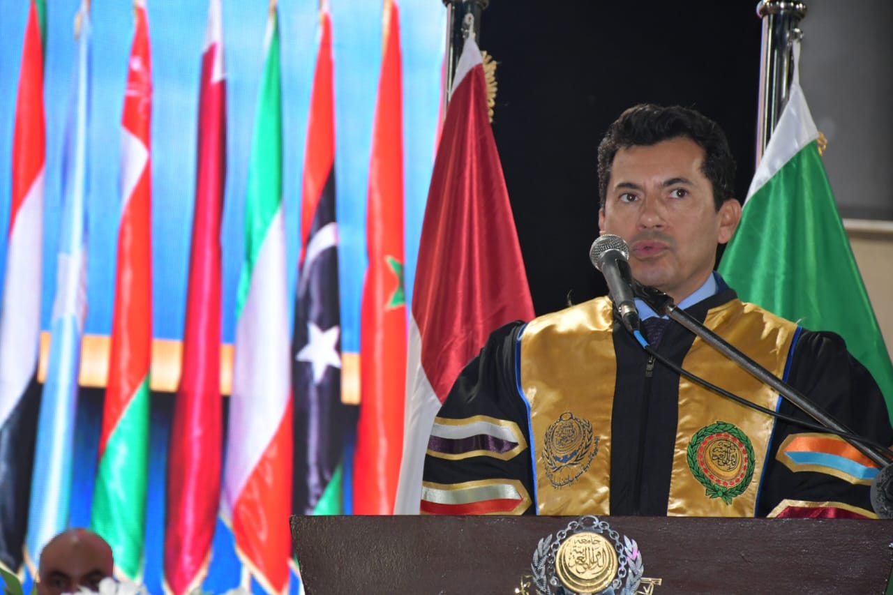 وهنأ وزير الشباب والرياضة الخريجين والخريجات بهذا اليوم الذى يحصدون فيه ثمار جهودهم  طيلة فترة دراستهم، مؤكداً  ان الاكاديمية تضم شبابا متميزا  هم مستقبل مصر والوطن العربي .