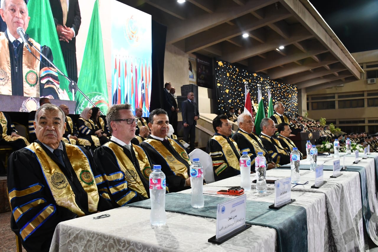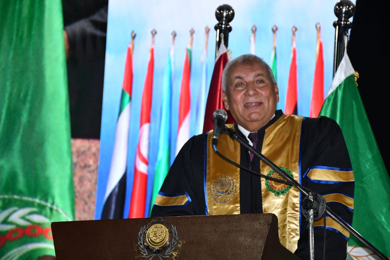واختتم كلمته متوجهاً بالشكر لمعالي السيد أحمد أبو الغيط الأمين العام لجامعة الدول العربية على رعايته للأكاديمية وكذلك أجهزة وإدارات الأمانة العامة على تعاونها الدائم والمستمر مع الأكاديمية ، لافتاً إلي أن هذا التقدم ولم يكن ليكتمل بدون تواصل وتعاون الأكاديمية مع المؤسسات العربية والجامعات العربية والمصرية.