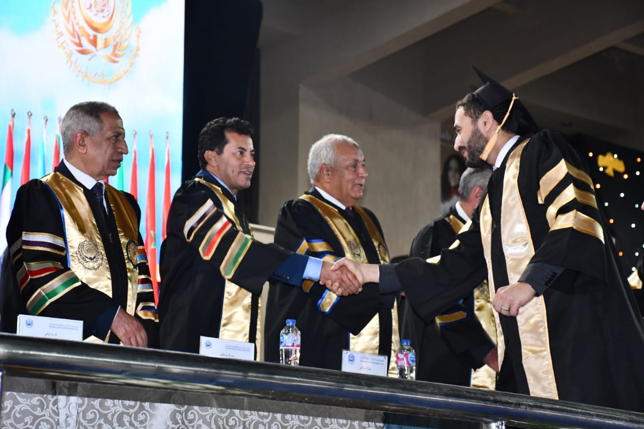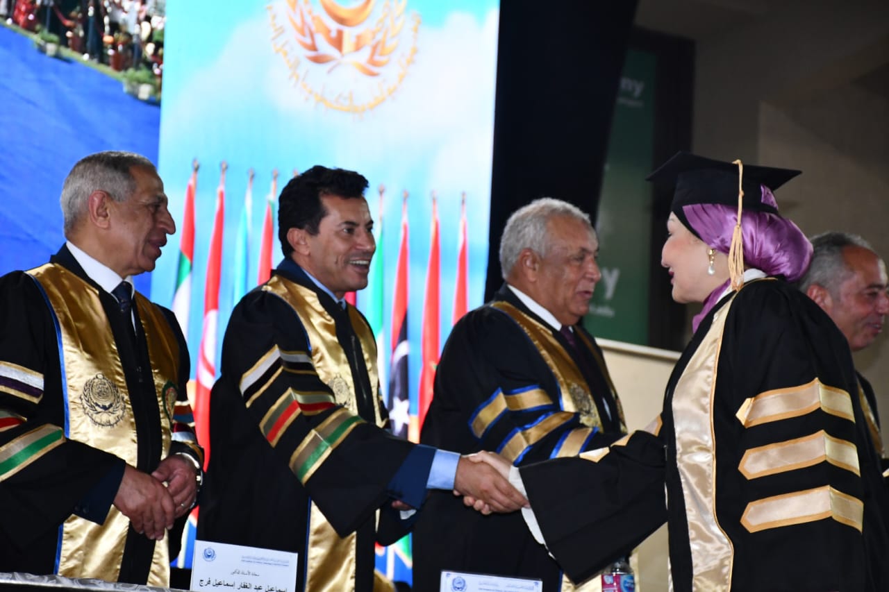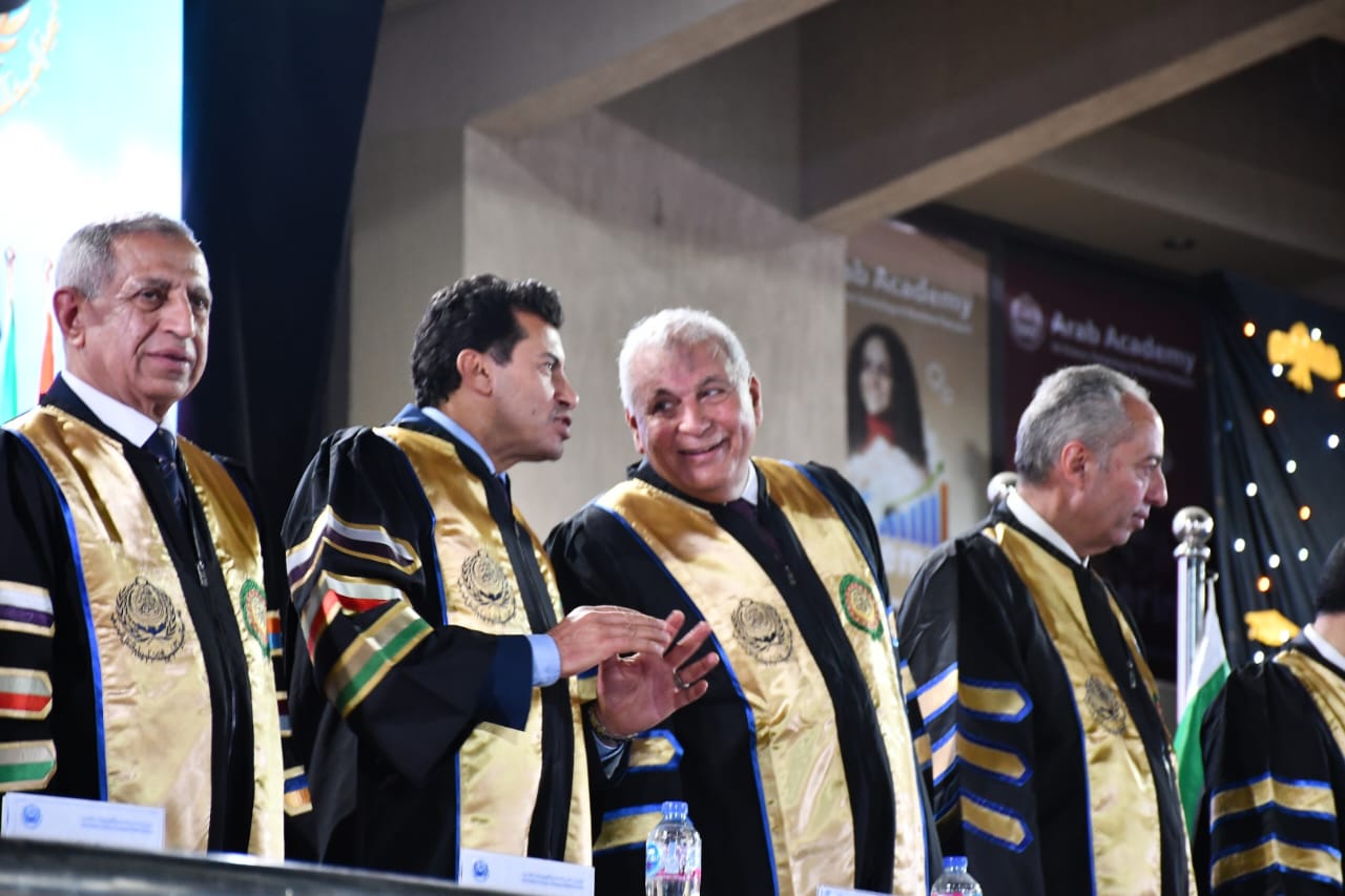 كما تقدم الدكتور أشرف صبحى بالشكر  للإكاديمية على التعاون المثمر مع الوزارة  فيما يتعلق بالمنح الدراسية التى تقدمها للرياضيين، والذى يعكس أهمية دورها فى خدمة المجتمع وتشجيع التفوق الرياضى ، وكذلك شكر رئيس الأكاديمية  الدكتور إسماعيل عبد الغفار وأعضاء هيئة التدريس على جهودهم التى أثمرت فى تخرج كوكبة جديدة من الخريجين.