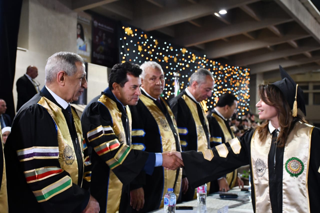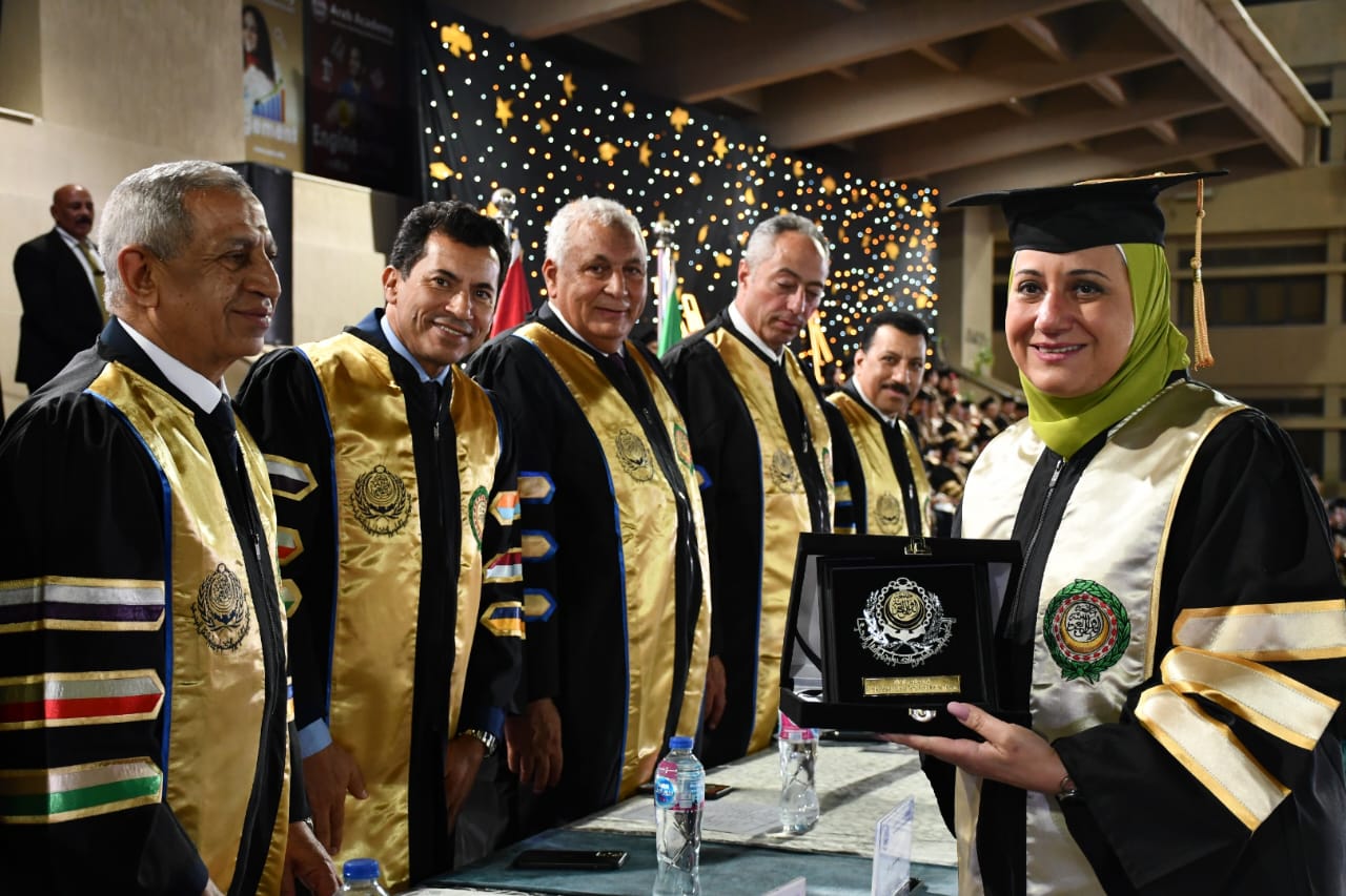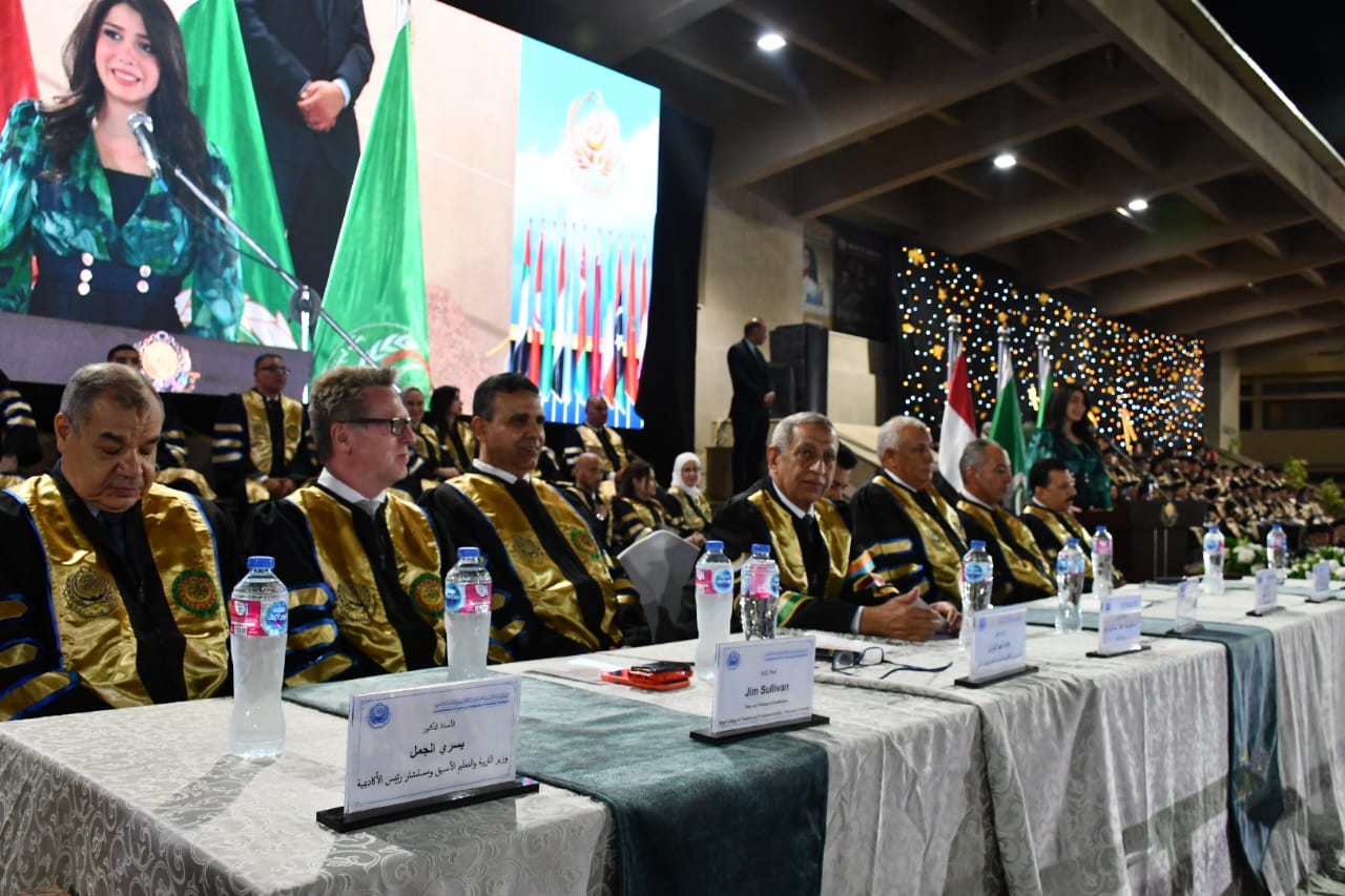 وواصل"عبد الغفار " نحتفل اليوم بتخريج وتكريم 420 خريجاً وخريجة من مصر والمملكة العربية السعودية والسودان وليبيا واليمن ممن حصلوا على شهاداتهم في الدكتوراه والماجستير المهني في إدارة الأعمال بالتعاون مع جامعة  Marywood بالولايات المتحدة الامريكية.