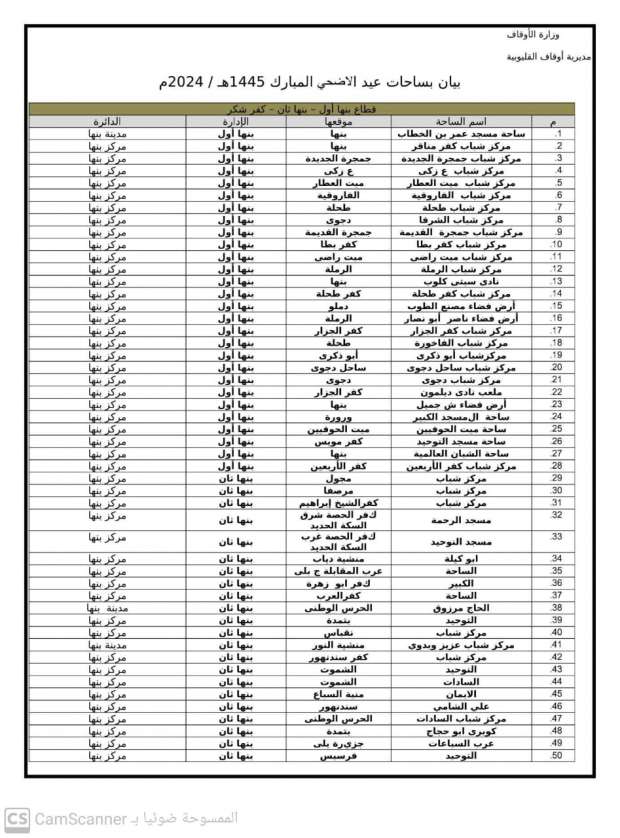 أماكن صلاة عيد الأضحى في محافظة القليوبية..