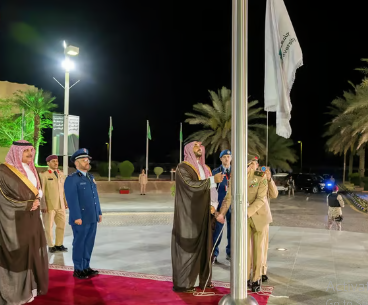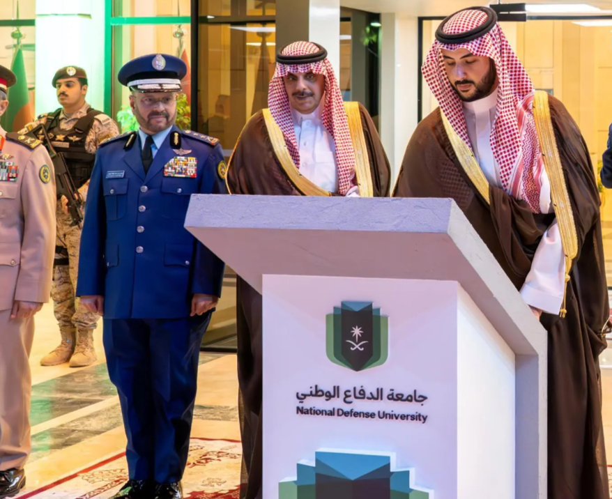 ووفق لوسائل الإعلام السعودية، فقد رعى الأمير خالد بن سلمان بن عبدالعزيز وزير الدفاع، حفل جامعة الدفاع الوطني، واستقبله الأمير عبدالرحمن بن محمد بن عياف نائب وزير الدفاع، ورئيس هيئة الأركان العامة الفريق الأول الركن فياض بن حامد الرويلي، ورئيس جامعة الدفاع الوطني اللواء الركن محمد بن جدوع الرويلي.