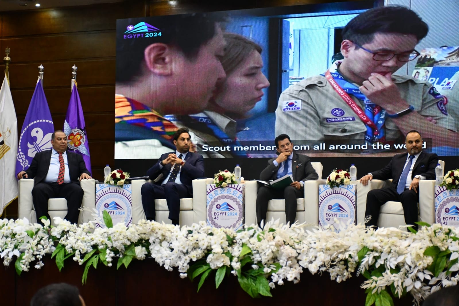 فيما تحدث الدكتور خالد العيسوي رئيس الاتحاد العام للكشافة والمرشدات عن دعم ودور للدولة المصرية في تنظيم المؤتمر العالمي، باعتباره مصر مركز فاعل وقوة كبري في تنمية الشباب.