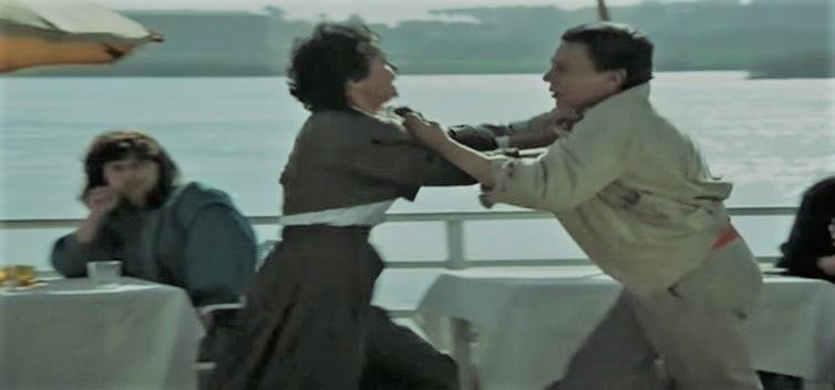 وأضافت عايدة رياض، خلال الجزء الثانى من لقائها مع الإعلامى دكتور عمرو الليثى ببرنامجه واحد من الناس على شاشة الحياة: "كنت بعمل مشهد وإحنا بنضرب بعض أنا والأستاذ عادل إمام، وكان مشهد ماستر سين، وكان الأستاذ شريف عرفة بيعمل البروفة زى المشهد بالظبط، وأستاذ عادل قال لى انتى تضربى على الهوا، وأول ما بدأنا المشهد لاقيته بيضرب بجد وأنا رياضية، فضربته بجد أنا كمان ونطيت ضربته بالدماغ، وكان من أجمل مشاهد الفيلم".