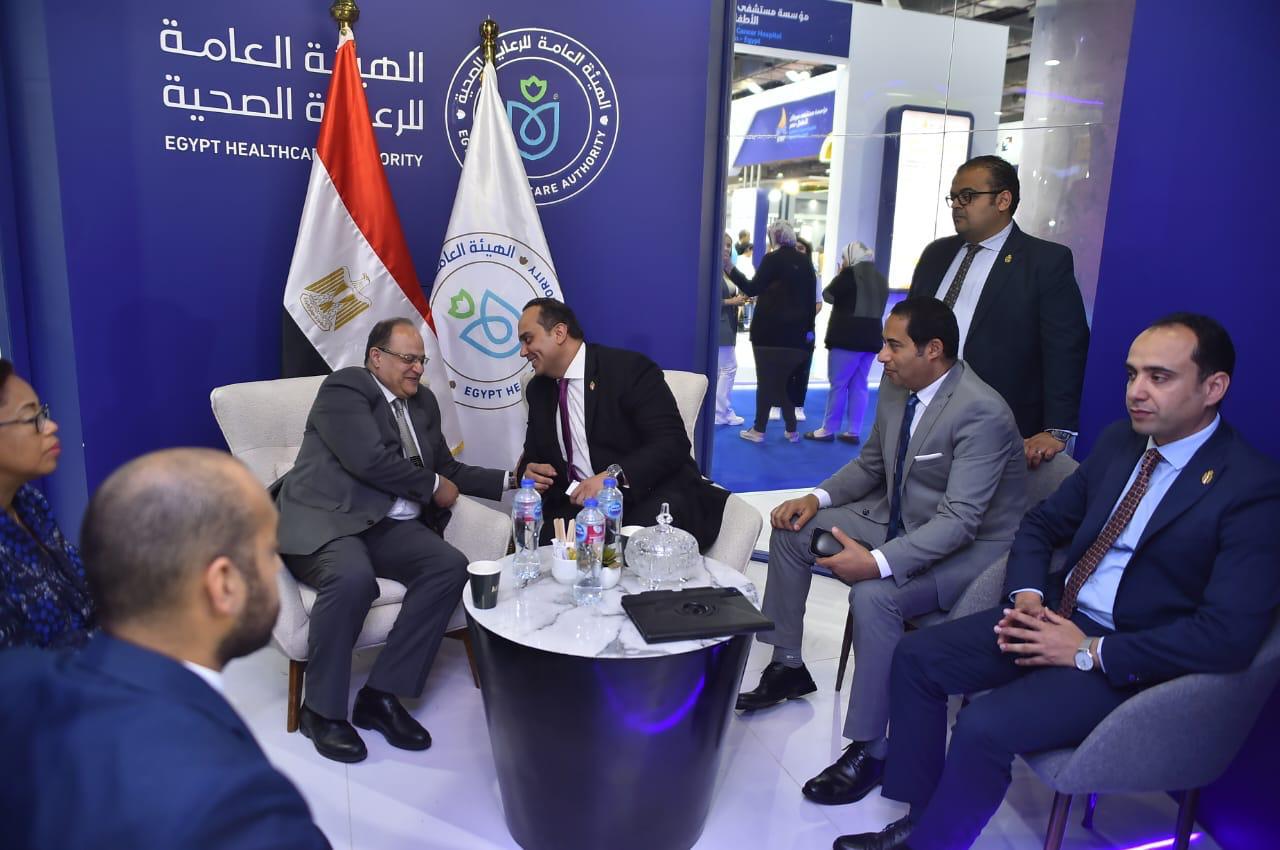 وخلال جولته بالمعرض، التقى رئيس الهيئة بالدكتور أحمد طه، رئيس الهيئة العامة للاعتماد والرقابة الصحية، والدكتور أحمد السبكي، رئيس الهيئة العامة للرعاية الصحية، وأيضاً العديد من الوفود الأجنبية المشاركة، ومنهم رئيس الجهة المناظرة بدولة جزر القمر، وممثلين عن الشركات الأجنبية المتواجدين بالمعرض؛ حيث اجتمع رئيس الهيئة بالعديد من ممثلي الشركات واستمع لتطلعاتهم الاستثمارية بسوق الدواء المصري، وأكد لهم حرص هيئة الدواء المصرية على تدفق استثماراتهم بسوق الدواء المصري، وأنها تعمل على توفير المناخ الجاذب للاستثمار في القطاع الدوائي.