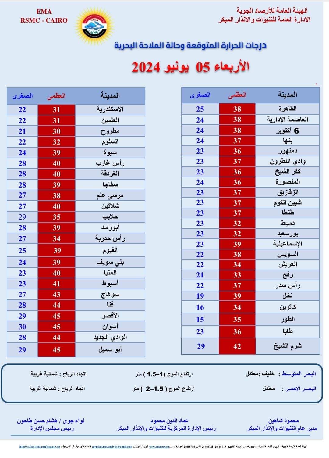 درجات الحرارة اليوم 5-6-2024
