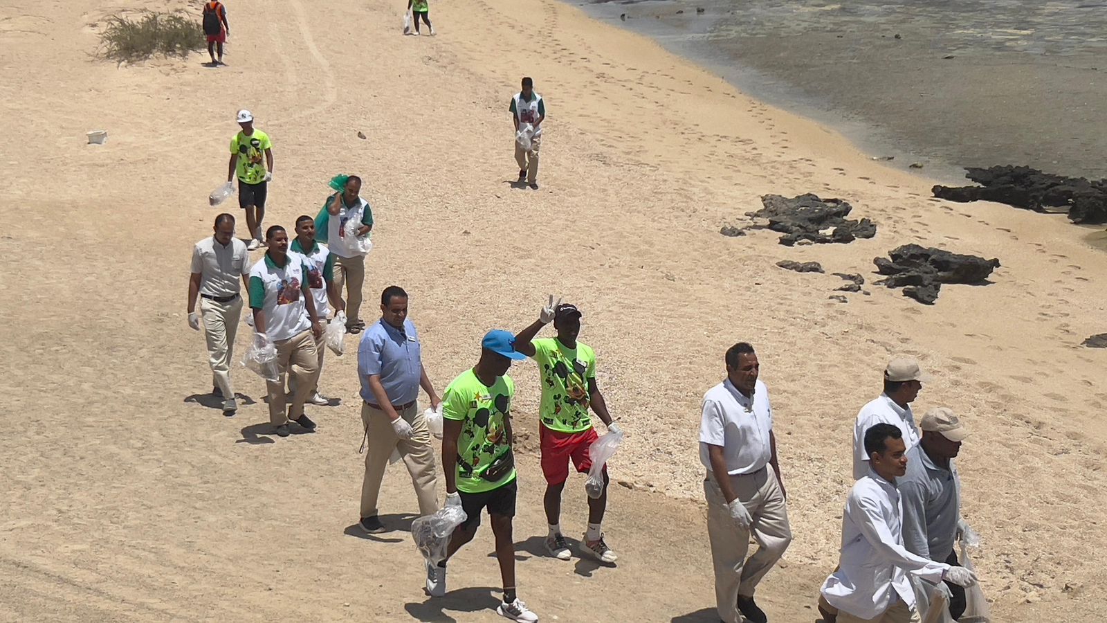 نظم عدد من الفنادق السياحية بمدينة مرسى علم جنوب البحر الاحمر حملة نظافة لشاطئ المدينة فى إطار الاحتفال بيوم البيئة العالمى .