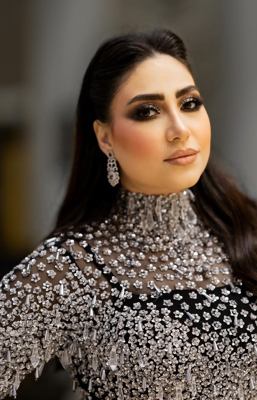 أما من الناحية الجمالية، اعتمدت تسريحة شعر جذابة ووضعت مكياجًا صاخبًا مرتكزًا على الألوان الترابية مع تحديد عينيها بالكحل والماسكرا السوداء ولون النود في الشفاه مما عكس سحر ملامحها بشكل واضح.