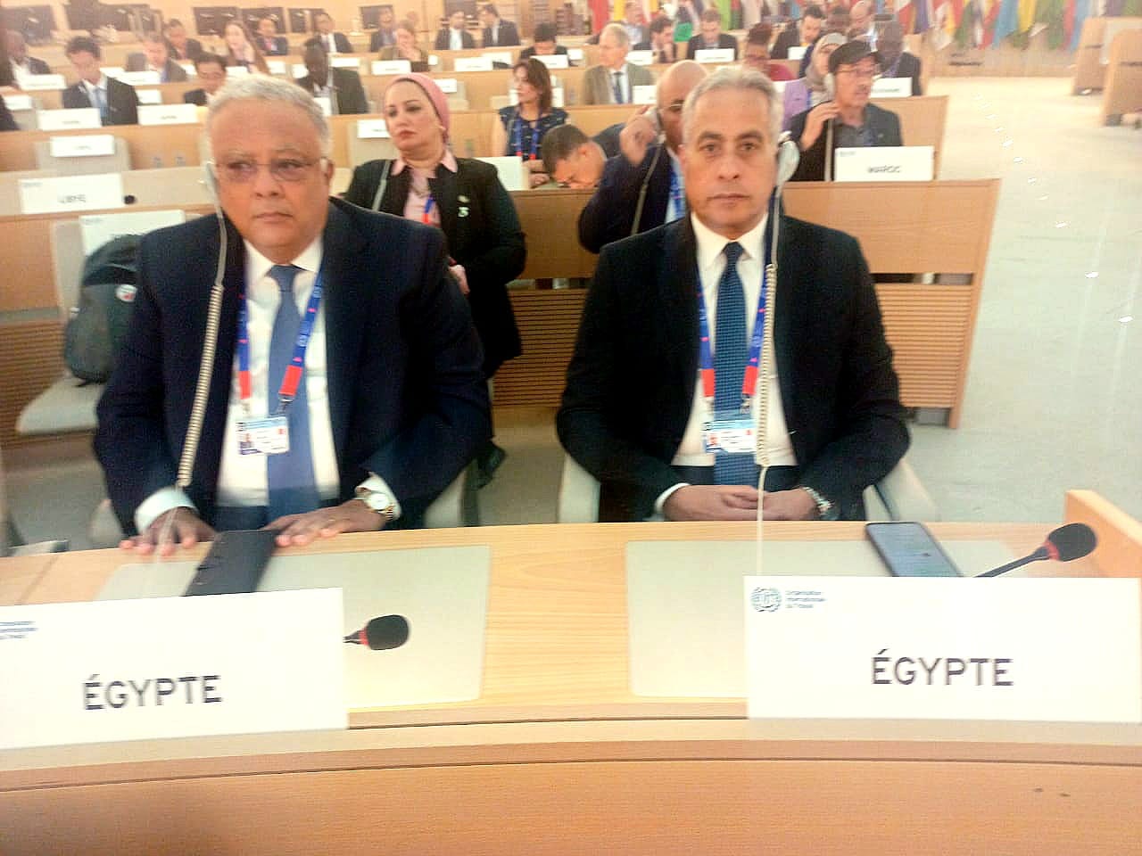 وحضر الجلسة،السفيرِ د . أحمدْ إيهابْ جمالْ الدينْ مندوبَ مصرَ الدائمِ لدى الأممِ المتحدةِ ،ومنظمةُ التجارةِ العالميةِ والمنظماتِ الدوليةِ الأخرى بجنيف،ومحمدْ عادلٍ سكرتيرِ أولٍ في" بعثةِ مصرَ "،ووفد عمل مصر ..بدأ الوزير شحاتة الكلمة بالقول :"أتقدم بهذا البيان نيابة عن مجموعة الدول العربية..وأغتنم هذهِ المناسبة للإعراب عن الشكر للسيد المدير العام على تقريره المعروض علينا"..وقال :"تنعقد هذه الجلسة في ظلِ تفاقمِ كارثةٍ إنسانية مروعةٍ وغير مسبوقةٍ يشهدها قطاعُ غزةِ نتيجة مواصلة إسرائيل حربهاِ غير القانونيةِ وعدوانهِا الغاشمِ على القطاعِ، مارست خلاله سلطات الاحتلال القصفَ والقتلَ والتطهيرَ العرقيِ واستخدام الأسلحة المحرمةِ دوليًا ضد شعبِ وعمالِ فلسطين ،فضلاً عن تدميرها المُتعمد للبنيةِ التحتيةِ وتهجيرها القسري لنحو مليونيّ فلسطيني بعد أن نزحوا داخليًا، وإعاقتها وصول المساعدات الإنسانية بما يستهدف جعل قطاع غزة غير قابل للحياة. "..