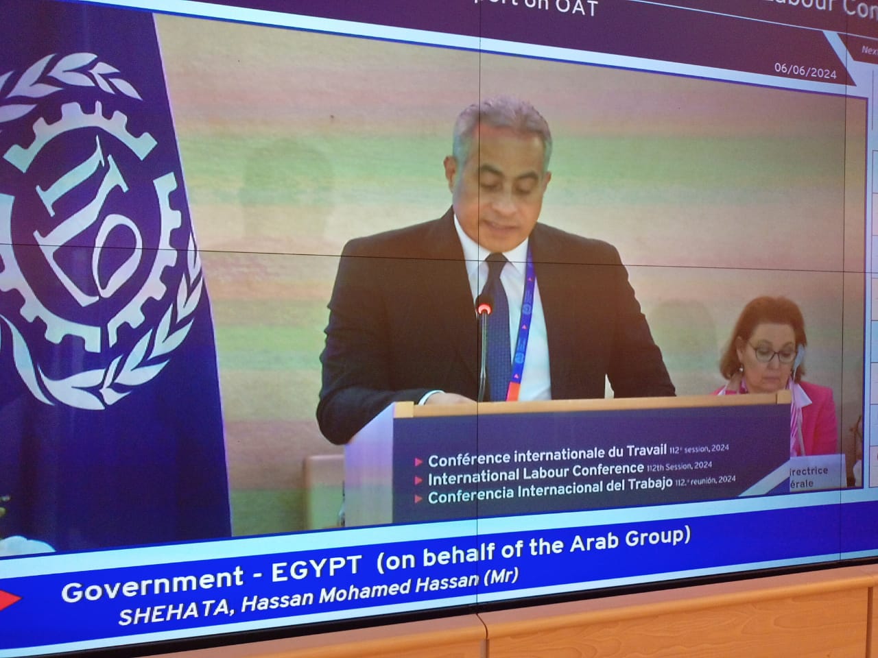 ألقى حسن شحاتة وزير العمل، اليوم الخميس، بقصر الأمم المُتحدة، كلمة بإسم "المجموعة العربية" المُشاركة في فعاليات الدورة 112 لمؤتمر العمل الدولي المُنعقد في جنيف،وذلك تحت عنوان " بيان تُلقيه مصر نيابة عن "المجموعة العربية" بشان تقرير السيد جلبرت هونجبو، المدير العام لمنظمة العمل الدولية عن "أوضاع العمال في فلسطين والأراضي العربية المُحتلة".
