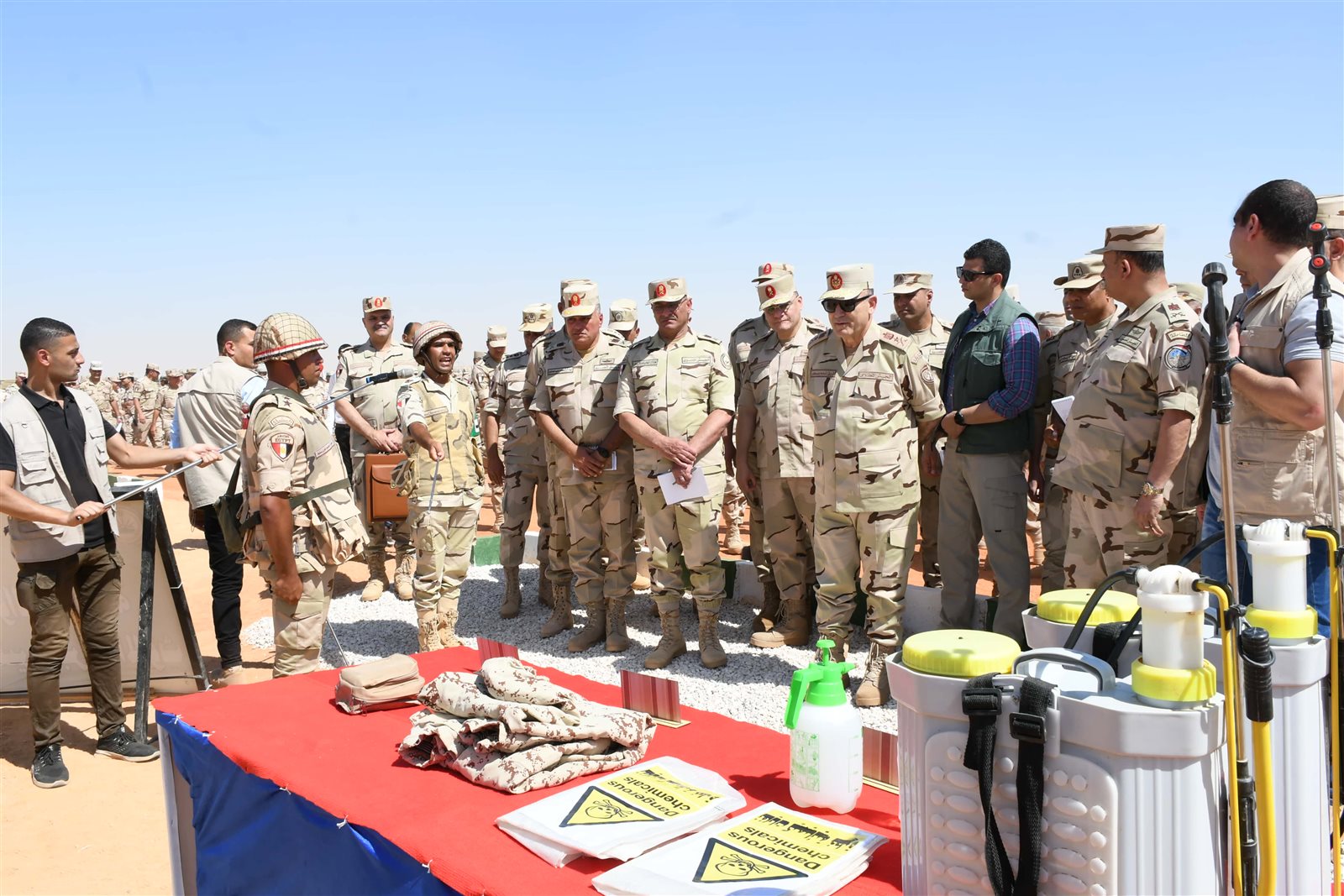 شهد الفريق أسامة عسكر رئيس أركان حرب القوات المسلحة البيان العملى لأنسب أسلوب تنفيذ إجراءات التأمين التخصصى لأحد تشكيلات الجيش الثالث الميدانى والذى يأتى فى إطار خطة التدريب القتالى لوحدات وتشكيلات القوات المسلحة .