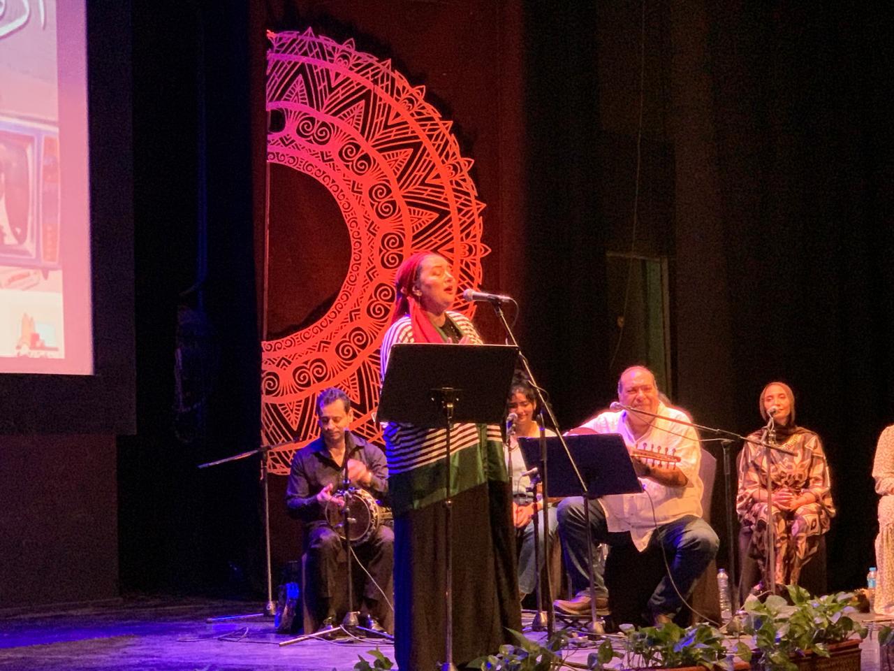 وتخلل اللقاء أعمالا غنائية من التراث المصرى  للمطربة الدكتورة غادة العبسى بمصاحبة عازف العود دكتور ماجد سليمان و فرقته منها "عنوان بيتنا ، في نور مُحياك ، القمر من فرحنا ، وين علي رام الله وغيرها " الى جانب مشاركة مميزة للشاعرة المبدعة نور عبد الله  بعدد من قصائدها المعروفة منها "كتلة مشاعر،الكذب، الغوا الحضن"، كما ابدع المنشد محمود ياسين التهامى بمجموعة من الابتهالات الدينية ،مع  حضور مميز ل آية الأبنودي  والقاءها باقة من اجمل قصائد والدها الكبير عبد الرحمن الأبنودي .