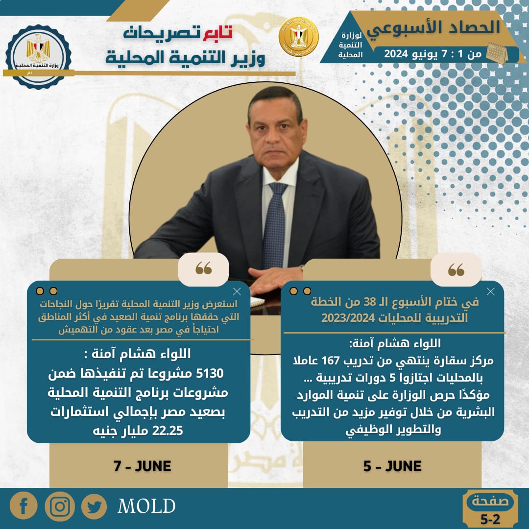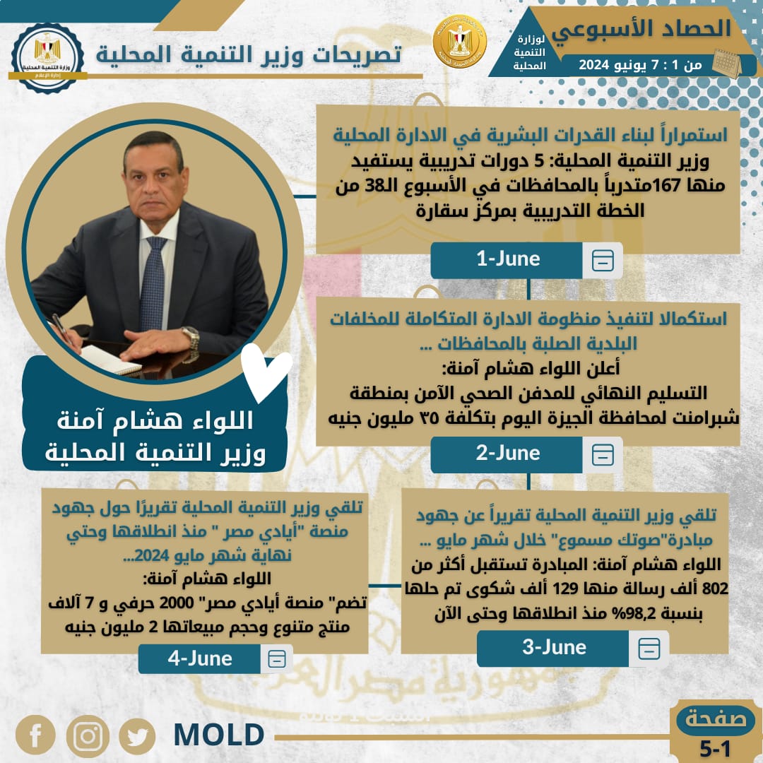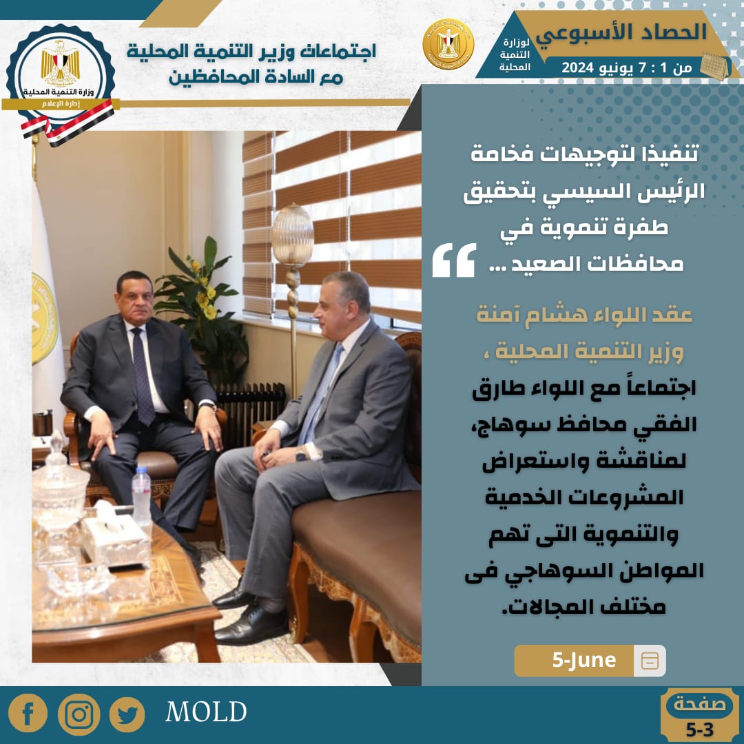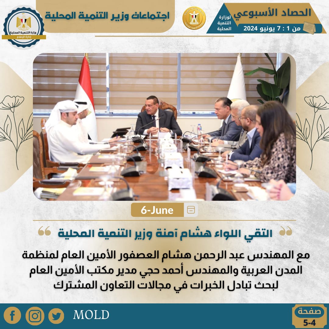 ننشر أبرز أنشطة وزارة التنمية المحلية خلال الأسبوع الماضي