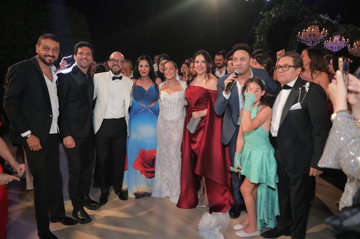 إيمي سمير غانم تتألق بفستان مكشوف في حفل زفاف جميلة عوض (شاهد)