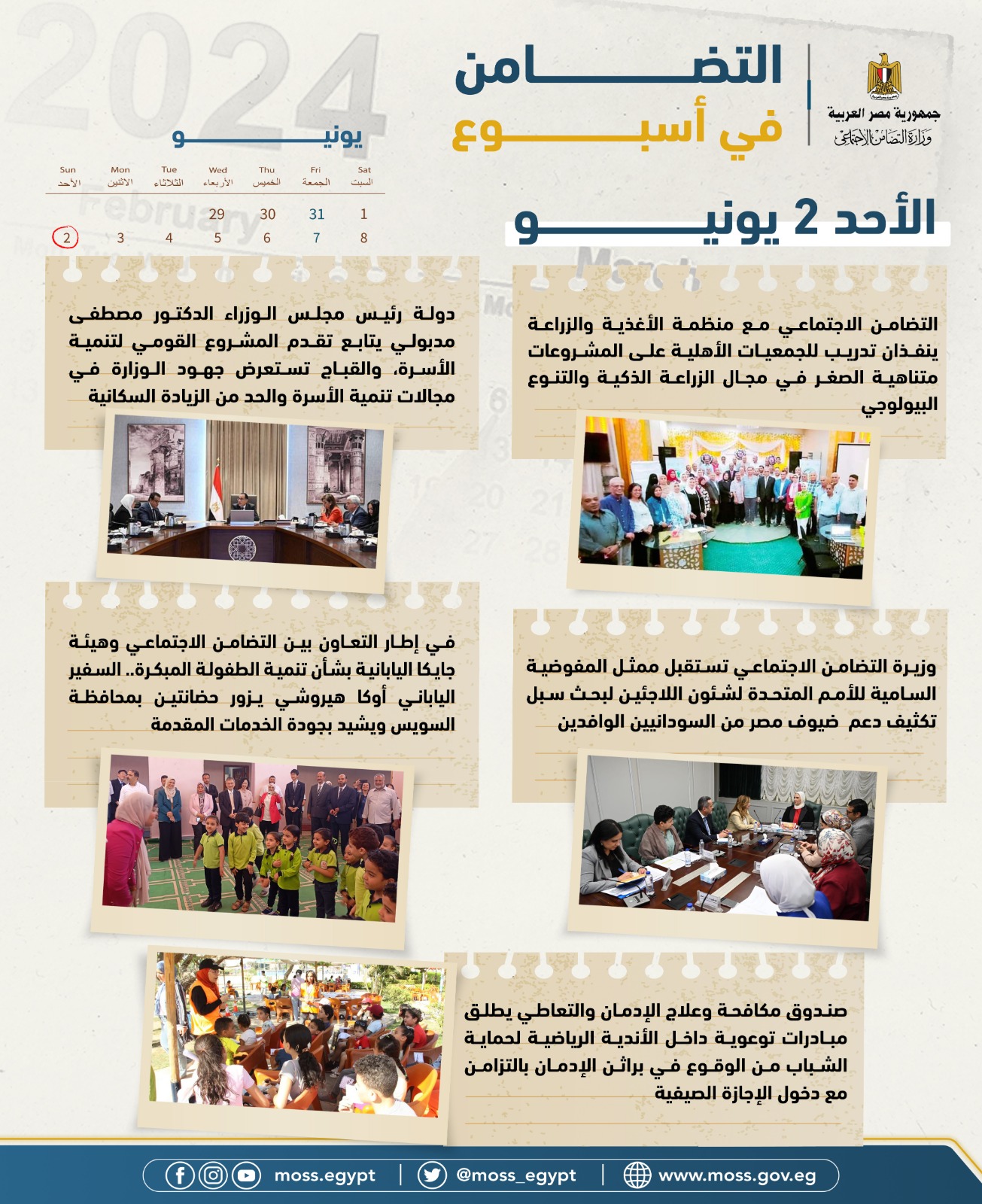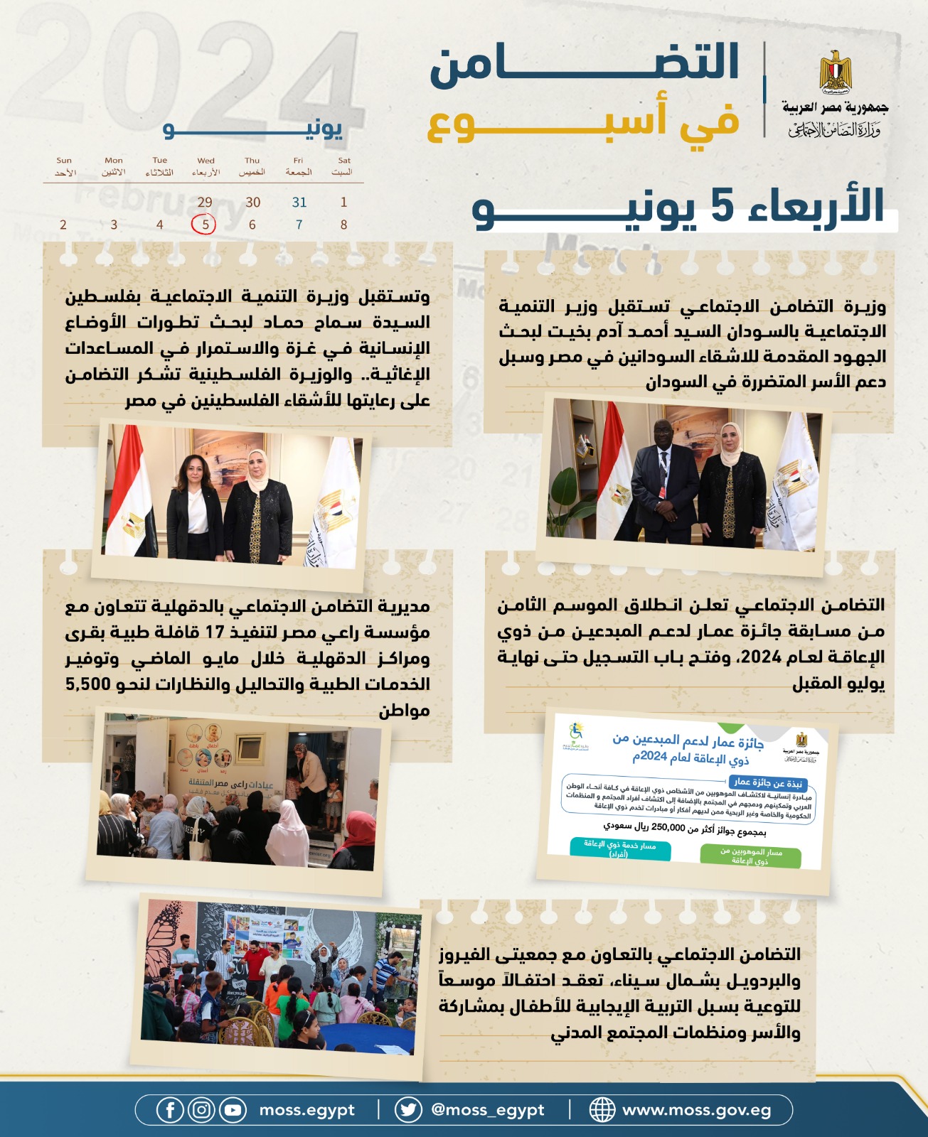 الحصاد الأسبوعي لرصد أنشطة وزارة التضامن الاجتماعي