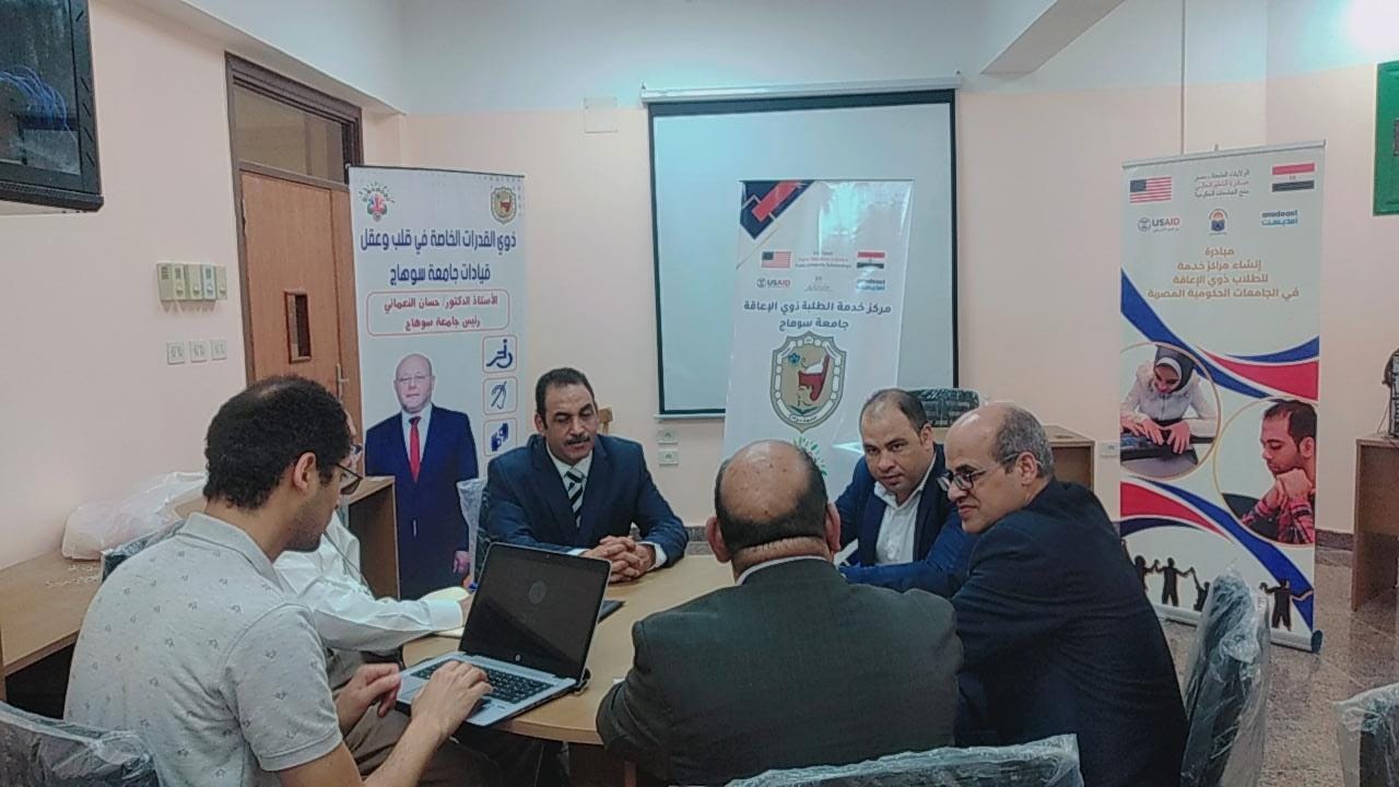 وفد هيئة امديست يتابع إنشاء مركز خدمة الطلاب ذوي الإعاقة بجامعة سوهاج