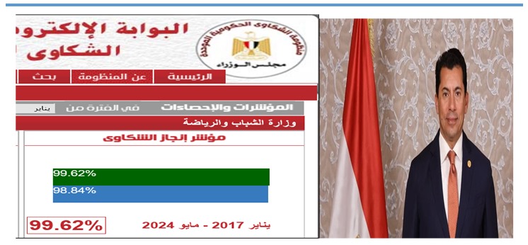 أشاد الدكتور أشرف صبحي وزير الشباب والرياضة بتحقيق وزارته نسبة إنجاز واستجابات مميزة في الرد ومعالجة شكاوى المواطنين بنسبة 99.62% خلال شهر مايو من عام 2024. وأعرب الوزير عن شكره لفريق عمل خدمة المواطنين بالوزارة على جهودهم.