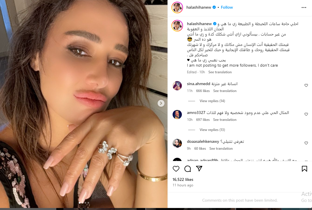 وتابعت قائلة: "بحب نفسي زي ما هي.. أنا لا أنشر للحصول على المزيد من المتابعين، لا يهمني".