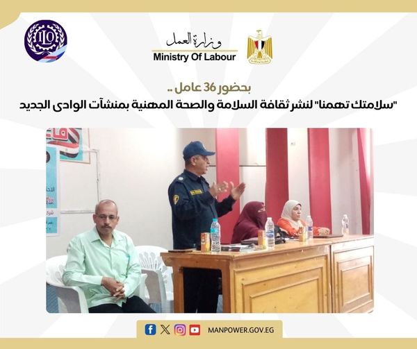 وزارة العمل تنشر ثقافة السلامة والصحة المهنية بمنشآت الوادي الجديد